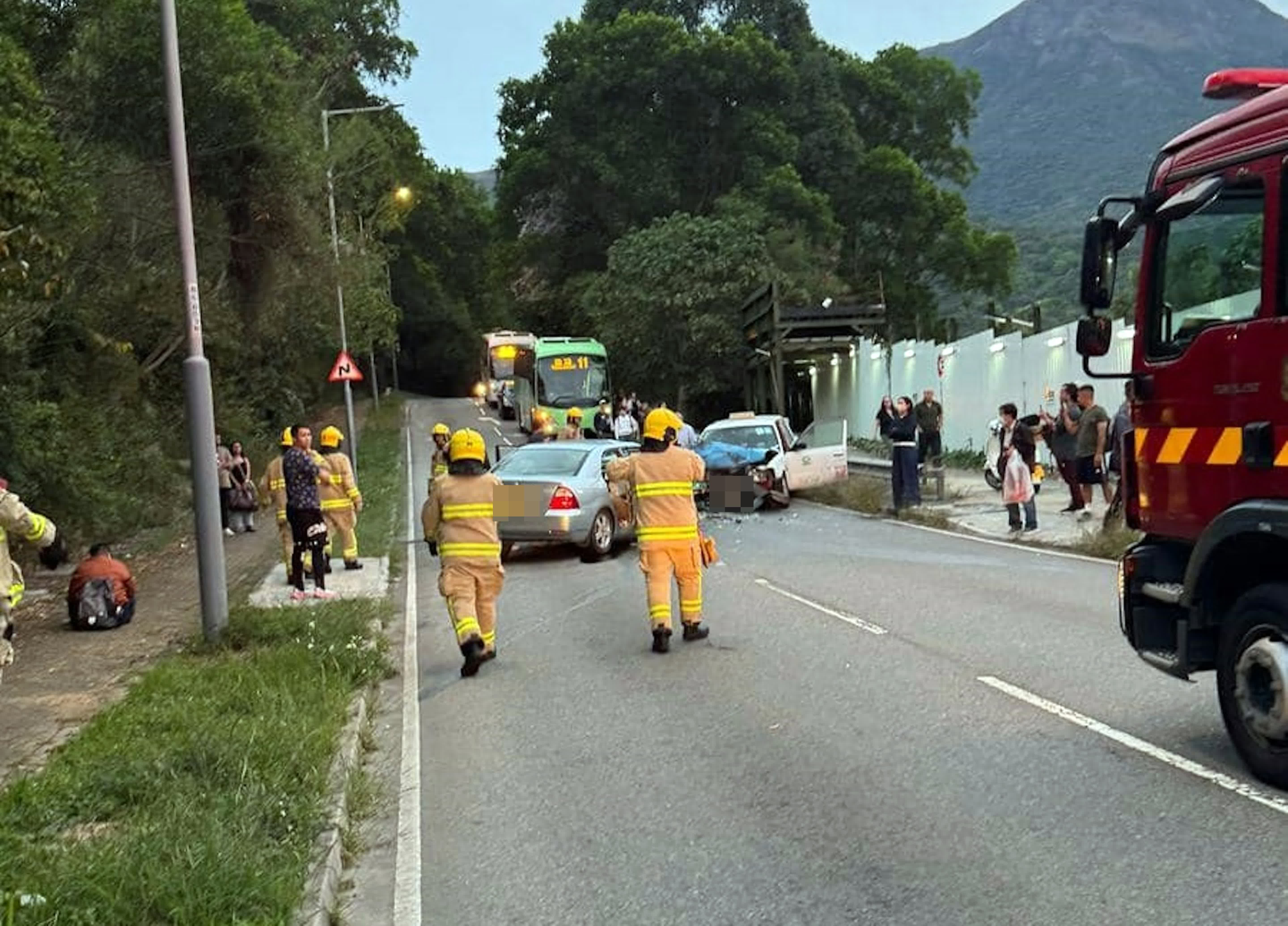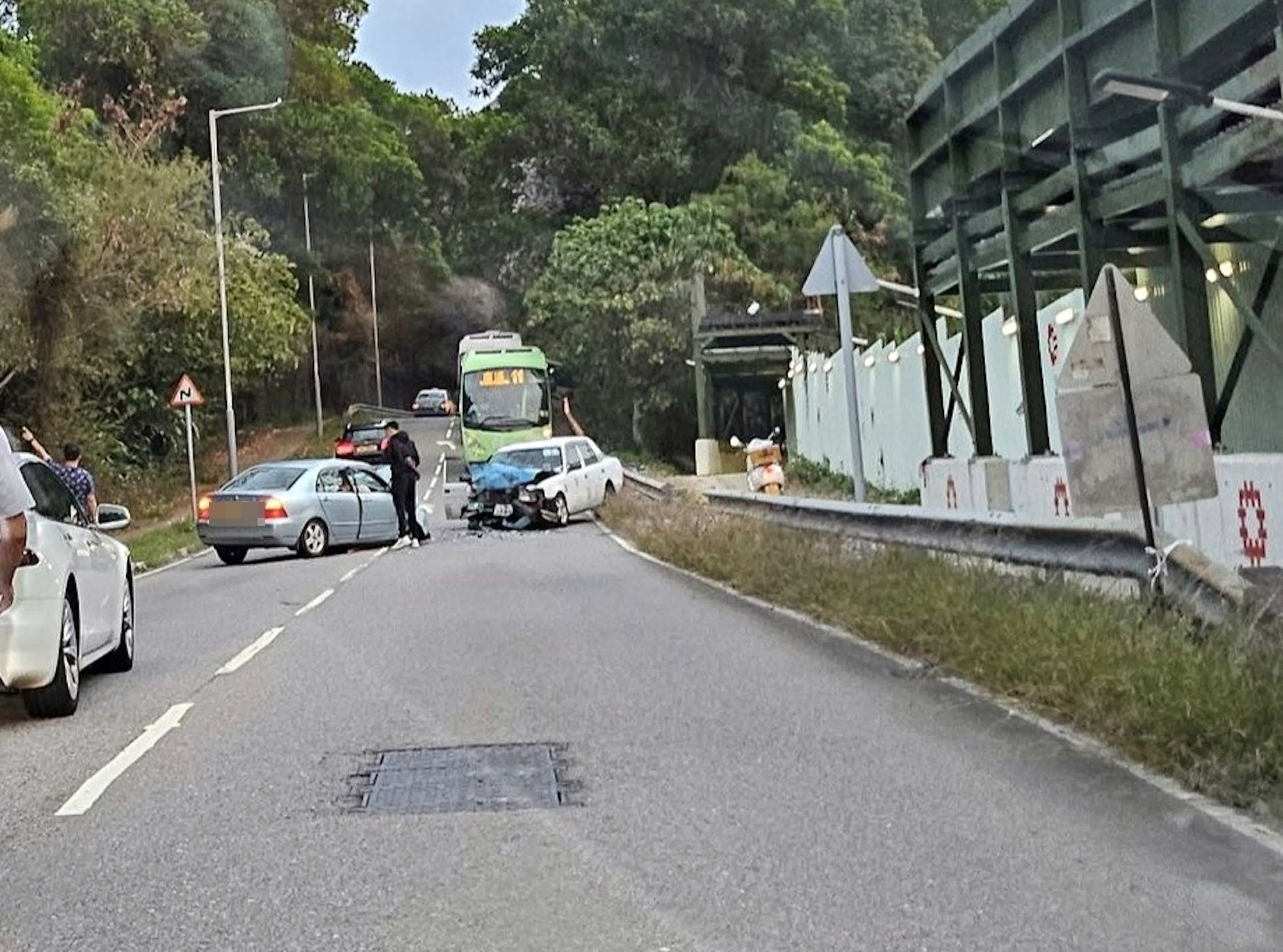 香港文匯報訊(記者 蕭景源)今日(3月13日)傍晚約6時28分,一輛私家車與一輛大嶼山的士在東涌道近龍井頭村迎頭相撞,兩車車頭均告損毀,零件散落一地。據報私家車司機一度被困,救出幸僅輕傷,的士司機則報稱腳、胸輕傷,兩人俱清醒,經救護員即場檢查後,僅一人送往瑪嘉烈醫院治理,警方正調查意外原因。受意外影響,現場來回行車線一度全封。