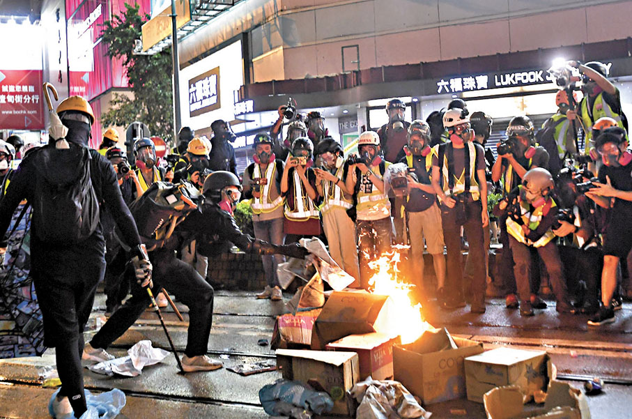 當晚近8時,警方從金鐘道沿軒尼詩道往銅鑼灣推進,沿途多次展示旗幟警告,並施放催淚煙、射水及發射海綿彈槍等驅散集結者。有人在軒尼詩道近晏頓街架設路障及縱火,有人爬上軒尼詩道一座大廈的平台破壞大公報標誌,並噴上鼓吹「港獨」的字句。