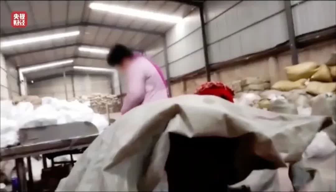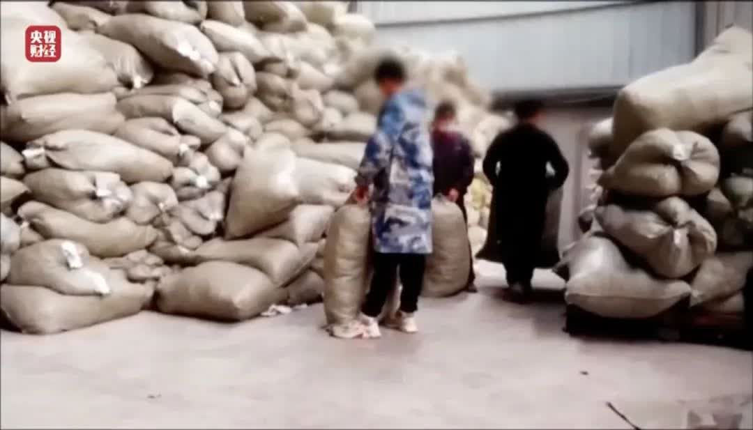 在另一個倉庫,記者看到了大量編織袋。劉總稱,這裏裝的就是初步分揀出來的「二等品」,已經按照不同的規格大小分類。