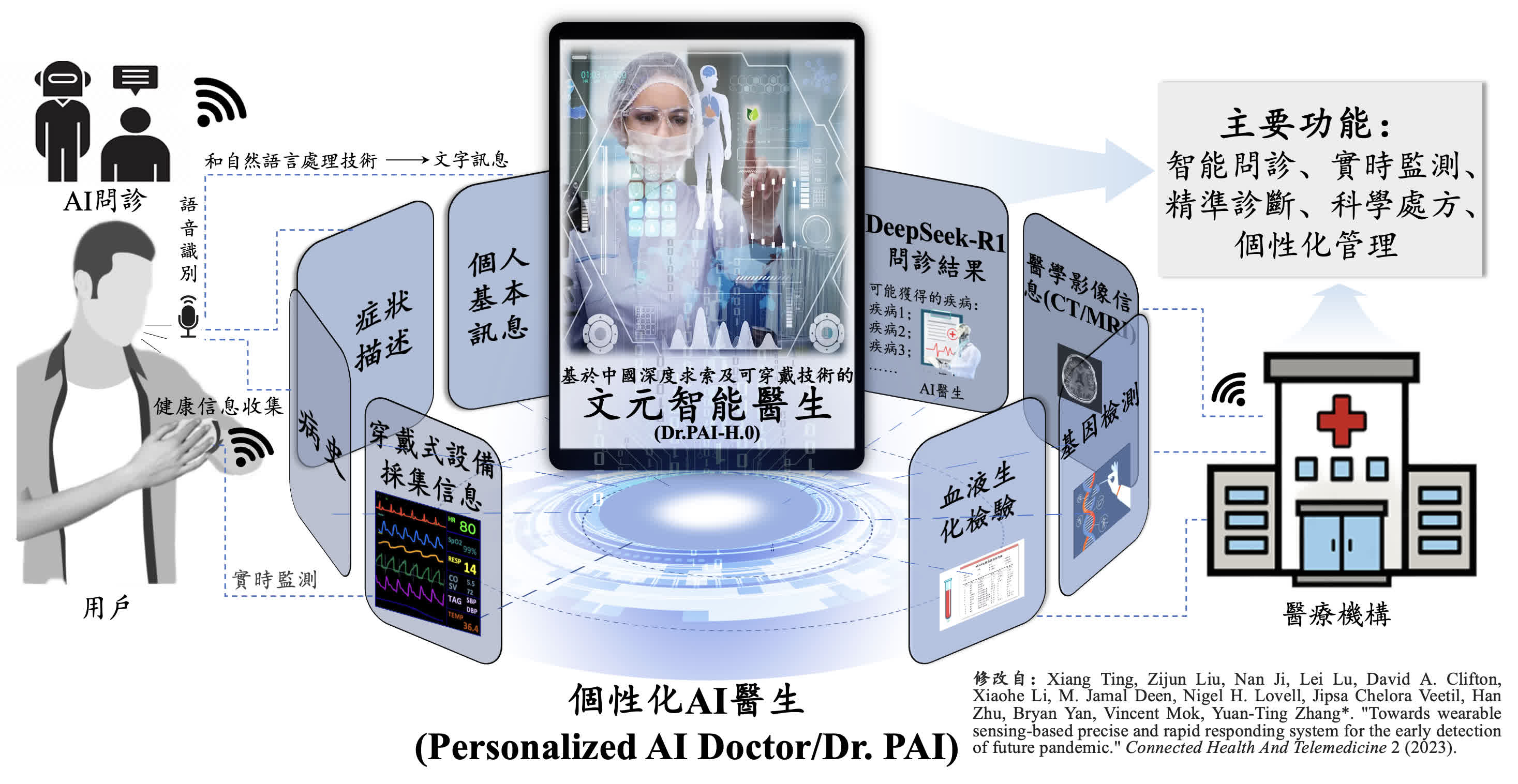 香港文匯報訊(記者 高鈺)香港中文大學電子工程學系研究教授張元亭團隊與香港醫學工程研究院、中國高血壓聯盟及廣東醫科大學合作,成功研發首個結合生成式人工智能(AI)大模型深度求索(DeepSeek)的可穿戴技術。研究團隊將這個專業級AI血壓管理系統命名為「文元智能醫生」(Dr. PAI)。該系統配合穿戴式設備,可全天候監測健康狀況,提供精準血壓、心率等數據,為慢性疾病管理開創解決方案,以應對全球高血壓日益嚴峻的挑戰。目前「文元智能醫生」Beta版已進入臨床測試階段,預計將於2025年年底正式推出。
