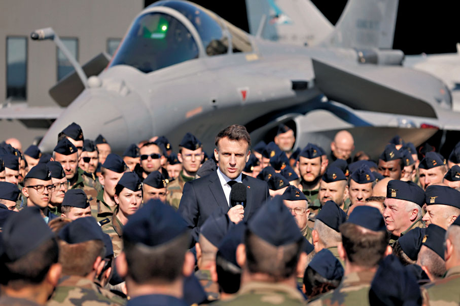 香港文匯報訊 法國總統馬克龍周二(3月18日)宣布,法國將投資近15億歐元(約127億港元)現代化改造一座空軍基地,令其能夠部署核武器。《華爾街日報》指出,法國積極展示核武器庫升級計劃,旨在鼓勵歐洲盟友尋求法國替代美國的核保護傘,加強歐洲軍事合作。