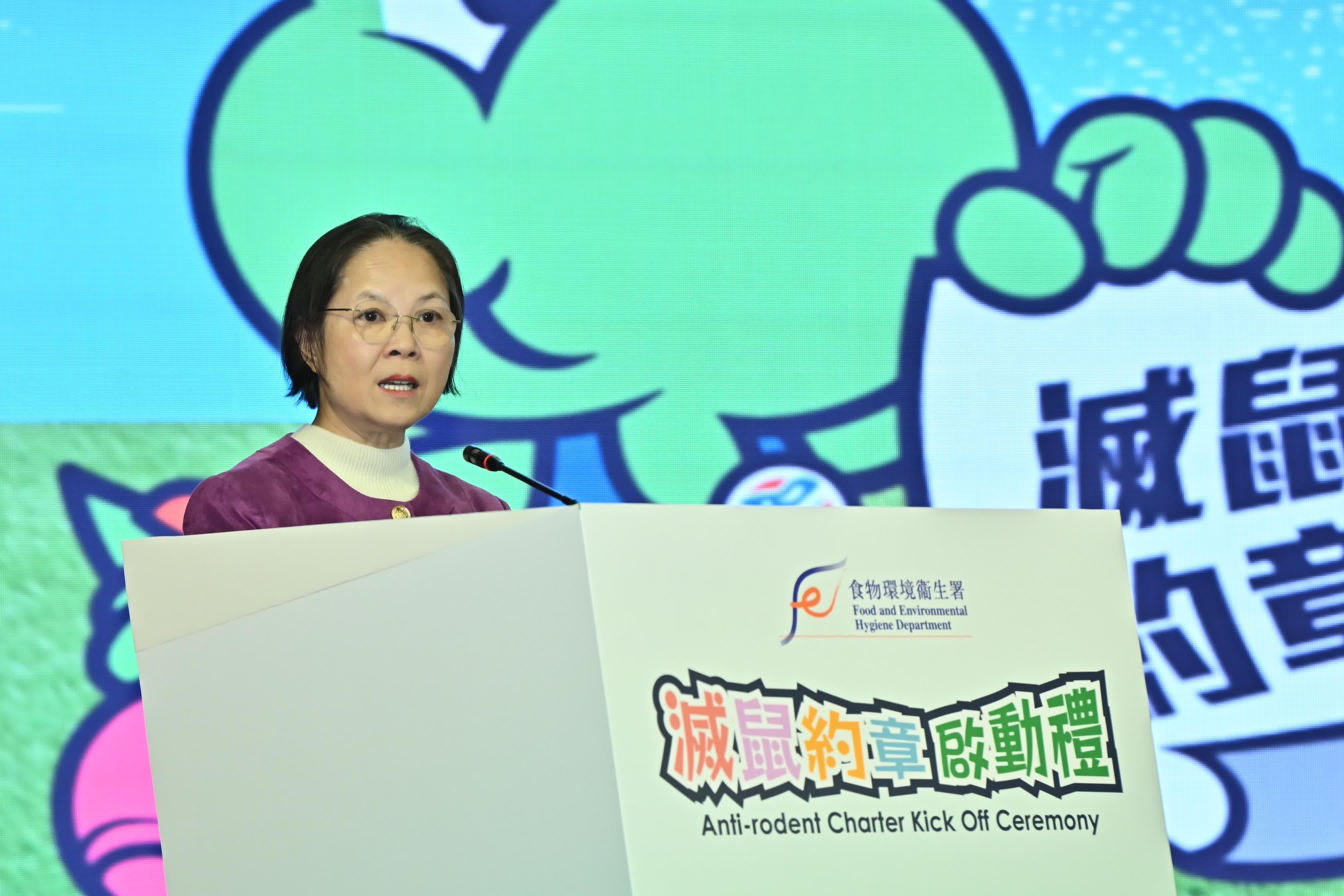 黃淑嫻在啟動禮上致辭時表示,防治鼠患一直是政府的重要使命。今屆政府成立之初,致力制定適切可行的防治鼠患策略,採用最具成本效益的方法,透過善用科技、人手及資源,使成效達至最大化。處理鼠患問題,單靠政府的工作並不足夠,唯有社區各界同心協力,從「食」、「住」、「行」三方面打擊老鼠的生存條件,才可實現無鼠環境的目標。