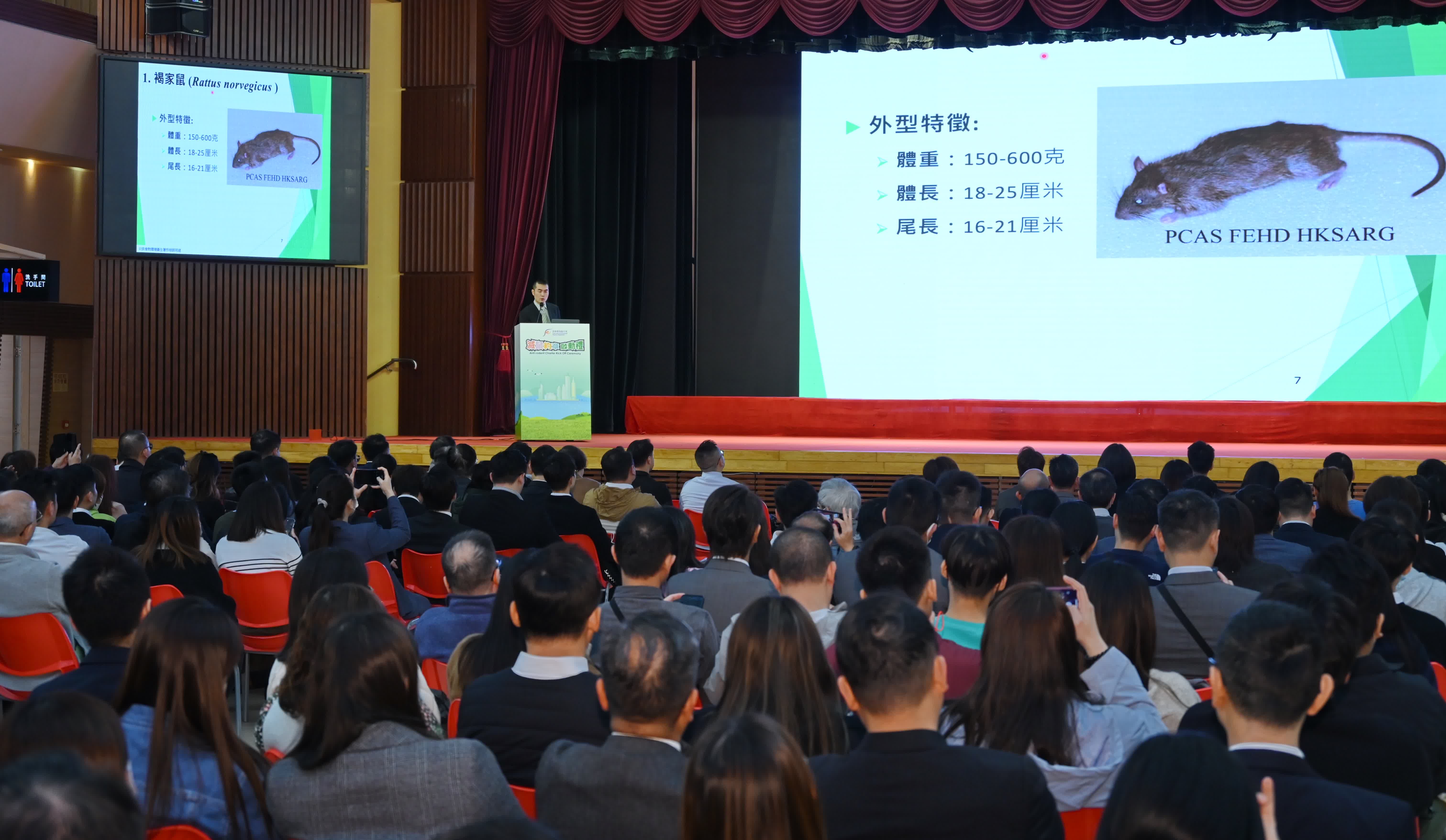 食環署在啟動禮後舉行防治蟲鼠講座,約350名滅鼠聯絡大使出席。講座分享了該署的防治鼠患措施,以及介紹防鼠滅鼠方法及工具。現場亦設有展板介紹《滅鼠約章》及防治鼠患相關資訊。