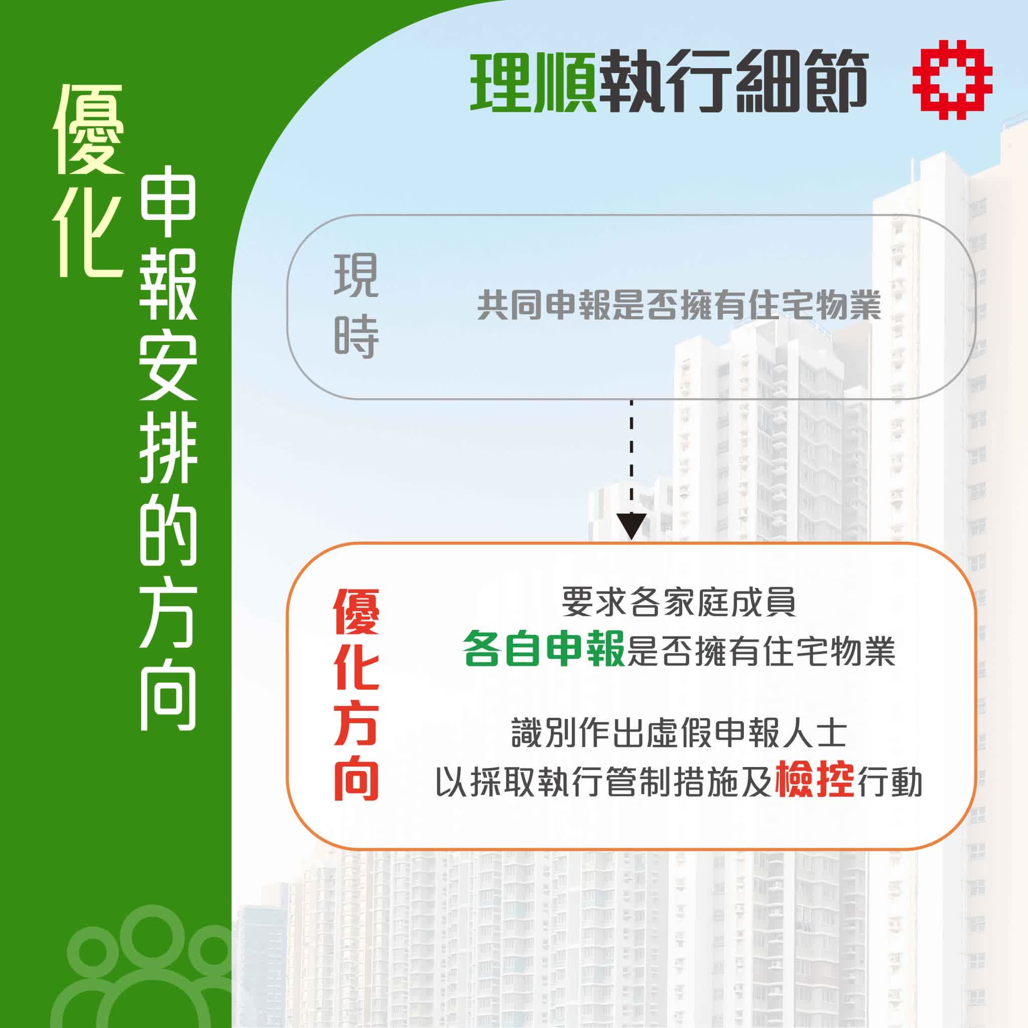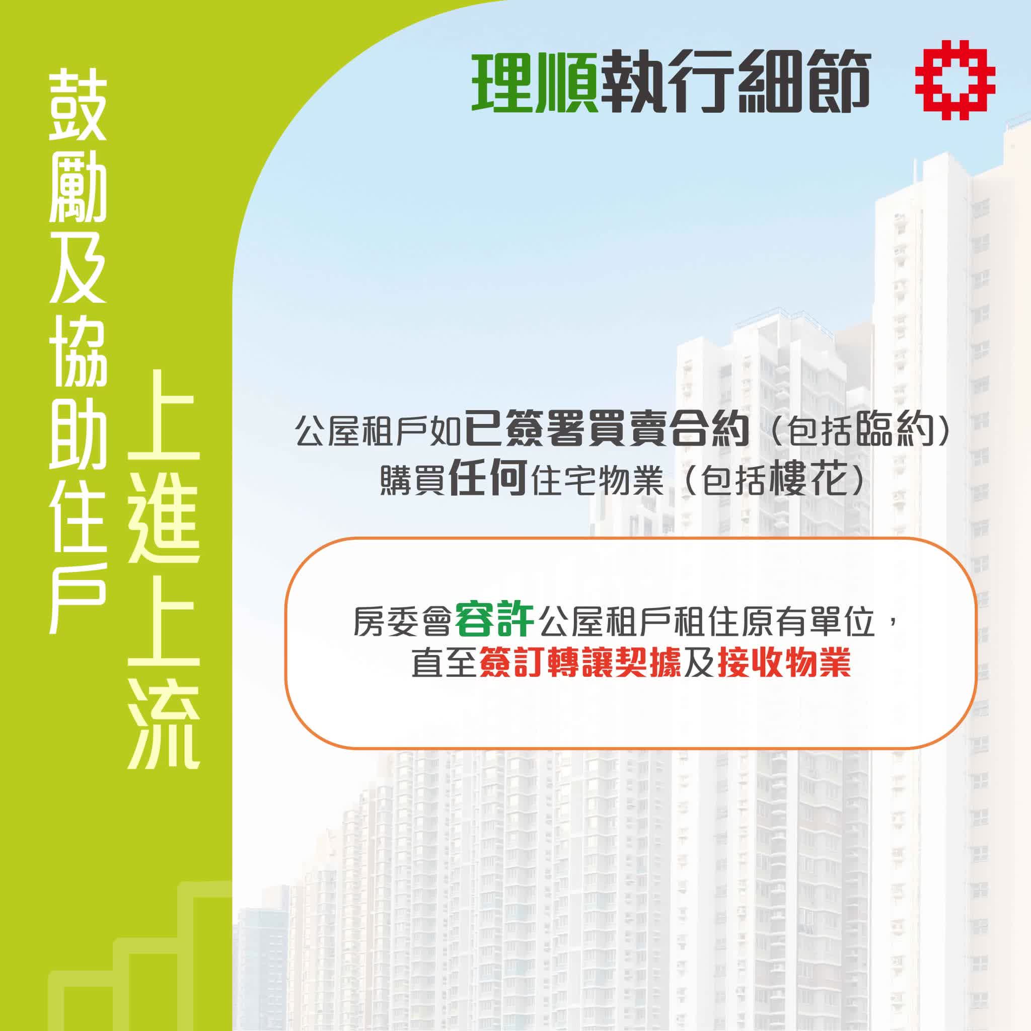 何永賢表示,希望新措施能讓公屋更好地體現功能,讓社會上最有需要的基層市民在初期有安身之處,中期累積財富,後期向上流動,形成積極正向的上流階梯,同時也讓公屋得以流轉,更有生命力地扶助更多有需要的市民。