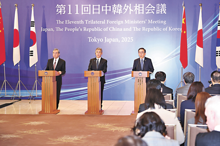 王毅說,今年是聯合國成立80周年,也是中國人民抗日戰爭暨世界反法西斯戰爭勝利80周年。真誠反省歷史才能切實開創未來。三國應重溫「正視歷史、面向未來」的共識,堅守合作初心,推動中日韓合作發揮「1+1+1>3」的作用,造福三國、地區和世界。