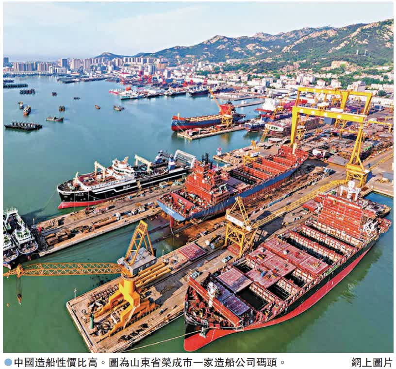 香港文匯報訊 美國貿易代表辦公室(USTR)周一(3月24日)起舉行聽證會,討論對中國製造船隻進入美國港口,徵收最高達150萬美元(約1,166萬港元)的港口「附加服務費」,作為重振美國造船業的資金來源。《華盛頓郵報》指出,船隻附加費是總統特朗普政府試圖針對中國的又一貿易措施,然而中國在全球造船業穩固的地位,絕無可能輕易被關稅戰撼動。美國造船業無法短時間內迅速發展,自作聰明的附加費措施,反而可能加劇美國的供應鏈危機。