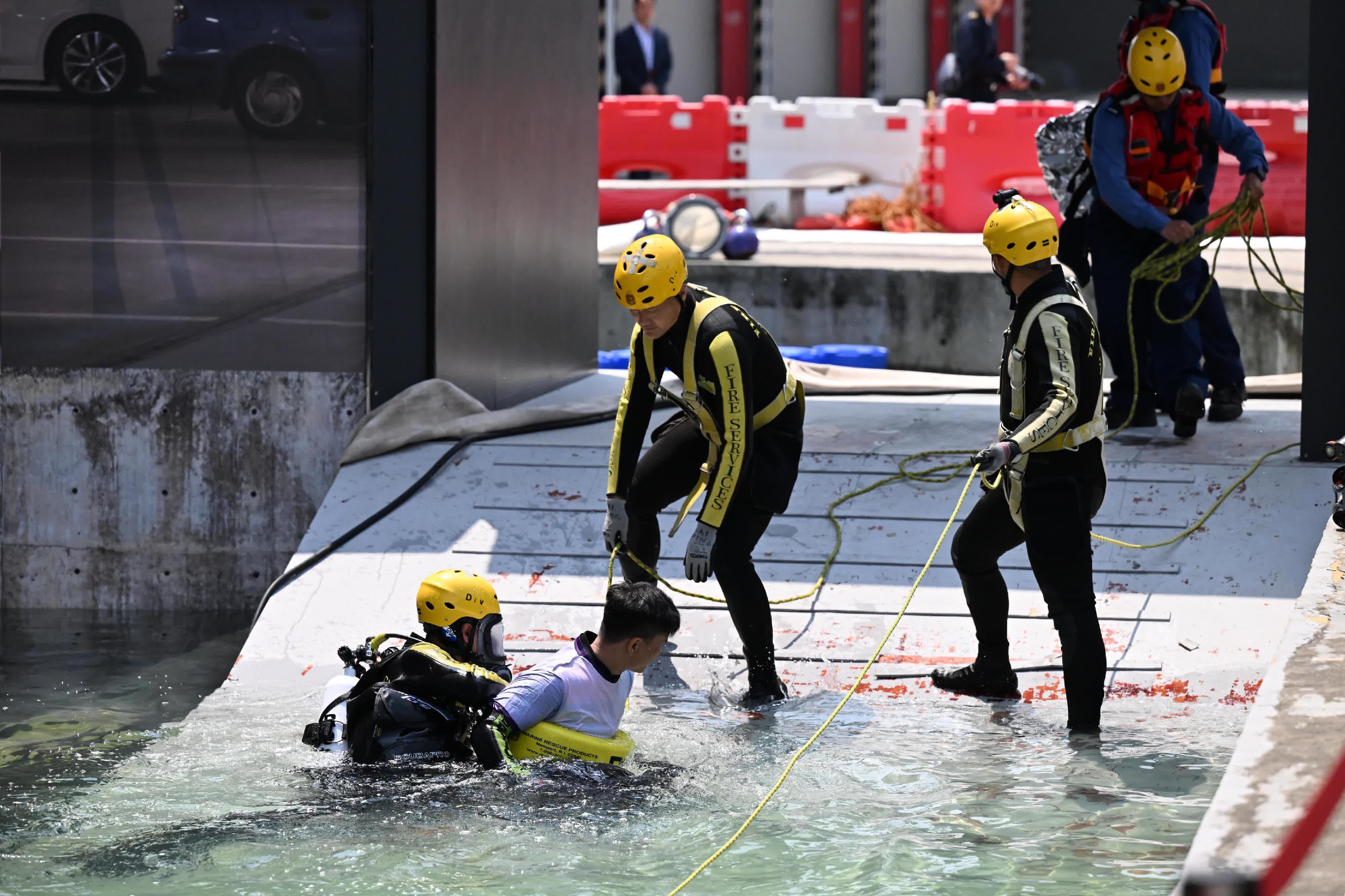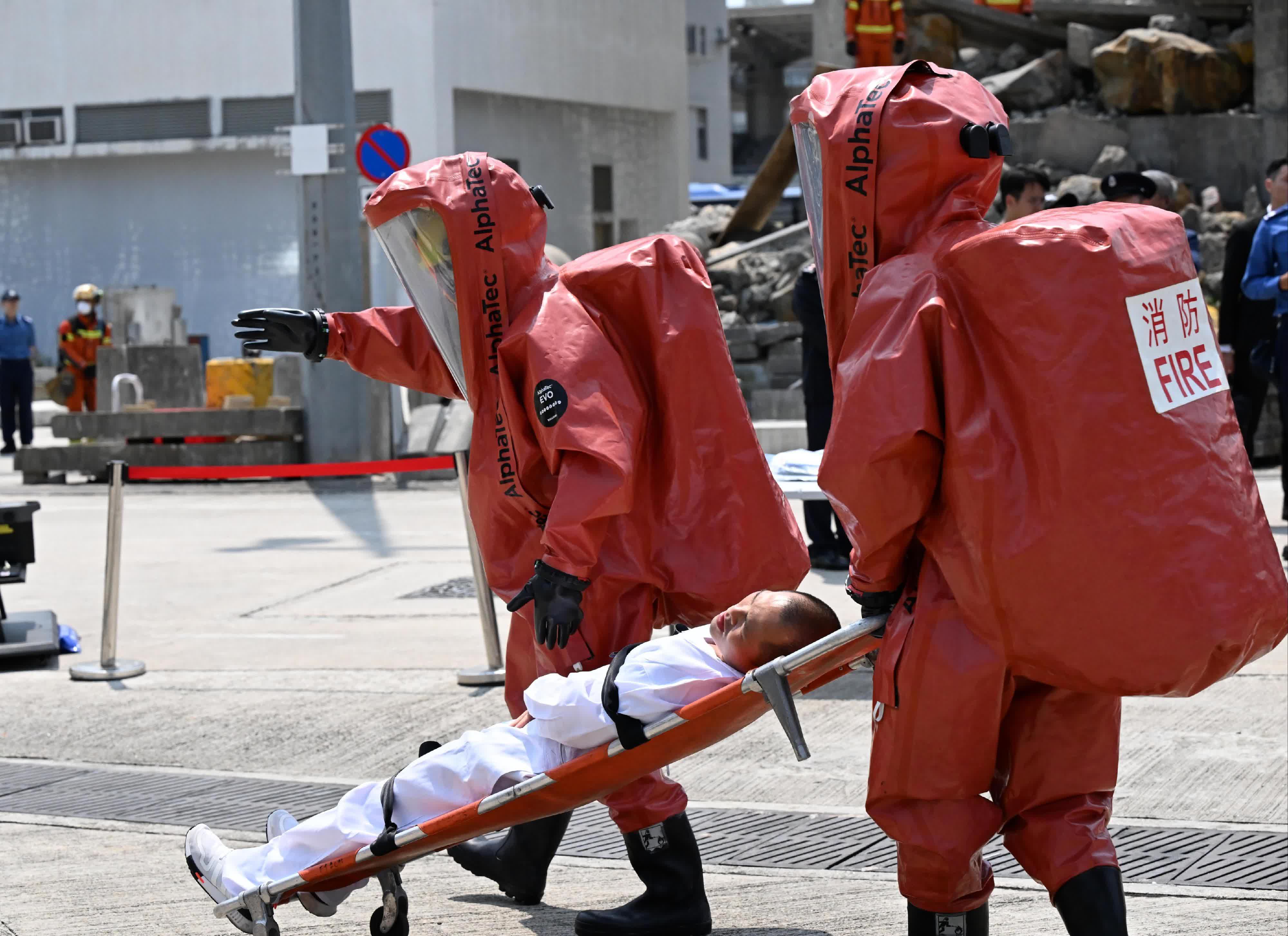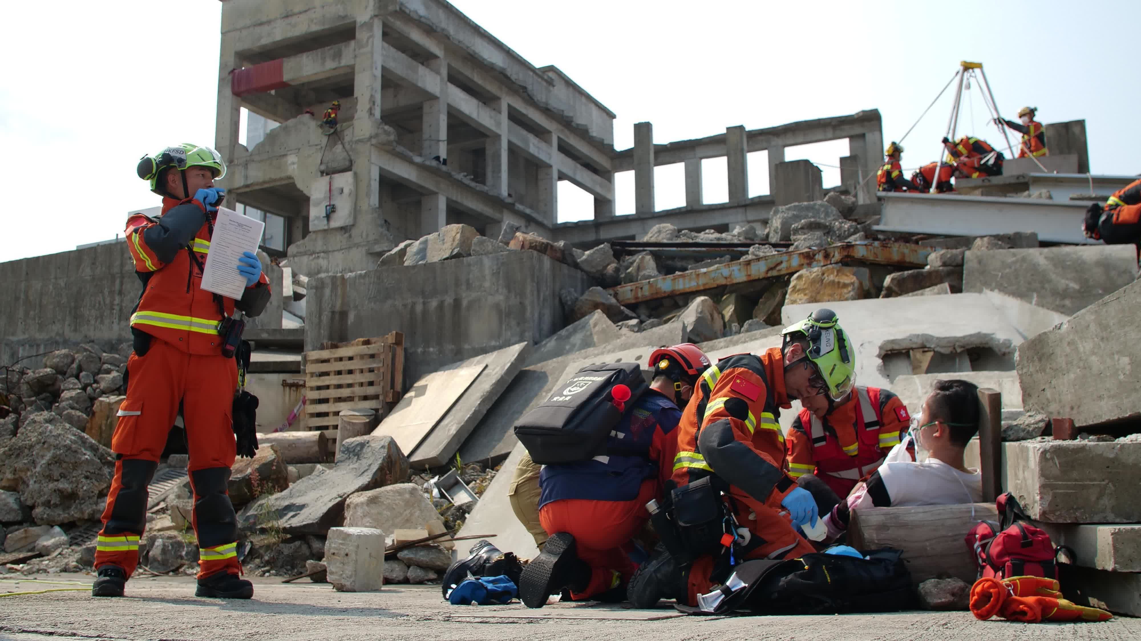廣東省消防救援總隊迅速派出60名隊員及13輛消防車,攜帶超過900件救援裝備;澳門消防局亦調遣15名隊員、五輛消防車及超過300件救援設備到香港支援。兩地隊伍分別經由深圳灣口岸和港珠澳大橋香港口岸跨境綠色通道抵港參與演練。