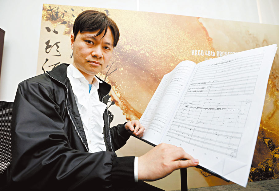 沈耀忠畢業於香港演藝學院作曲及電子音樂系,現為愛沙尼亞音樂及劇院學院作曲碩士生。他多才多藝,持小提琴、大提琴、樂理、電結他及搖滾鼓八級證書,亦懂演奏革胡、三弦琴、大阮等,還曾修讀中樂及西樂指揮課程。正是這豐富多彩的音樂歷程,使他在創作時既不忘傳統文化知識,又勇於開放思維靈活革新,將傳統與現代作曲技法巧妙融合。「我用傳統中國五聲音階宮、商、角、徵、羽去做和弦,而配器和和聲進行都很現代。現代音樂已經無分中西,大家共同都在創新。我還在樂曲中加入了一些中樂扮鴨子和海鷗聲音的元素,這是過往創作時不曾試過的。」