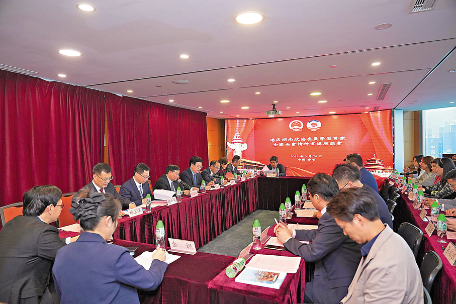 湖南省政協副主席胡偉林表示,希望港區委員深刻認識到,國家經濟基本面積極向好的趨勢沒有改變,中國仍然是世界經濟的重要引擎,堅定好發展信心,並傳遞好發展信心;要助力湘港深度合作,引導金融資本精準投向湖南的先進製造業、新能源、新材料等戰略性新興產業,助力湖南企業引進香港先進管理經驗和前沿技術。