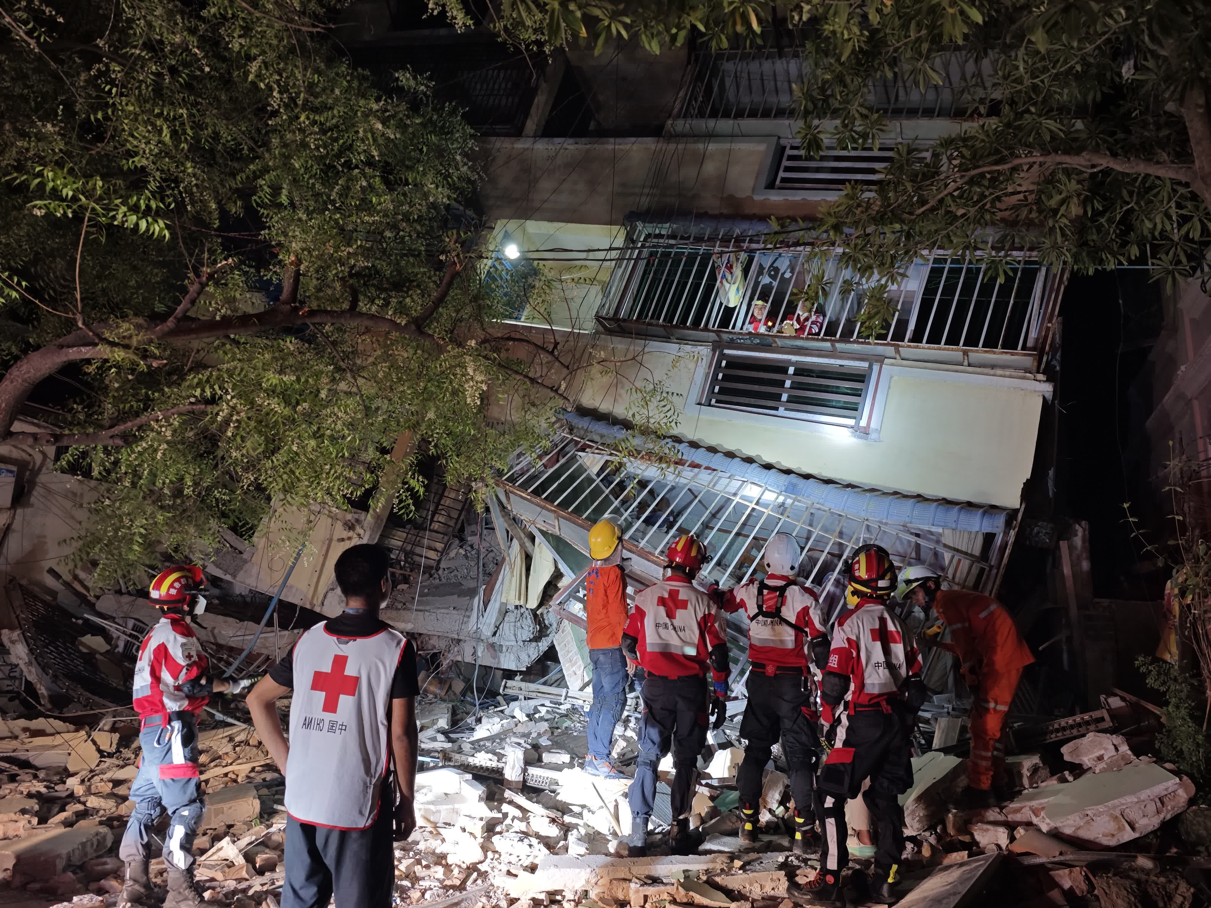中國紅十字國際救援隊一行15人31日一早抵達緬甸曼德勒市,隊員立即在該市開展破拆搜救、護理轉運、醫療救助和心理疏導等抗震救災工作。晚上7點10分,救援隊接到求助,在曼德勒68-41地區,倒塌的六層樓一樓超市有一名22歲女生被壓。抵達現場後,救援隊發現這裏晚上斷電沒有照明,隊員立即開啟無人機照明。「China,非常棒!」救援隊的沈廷沖說,當無人機飛上天空的時候,當地的百姓都在鼓掌。