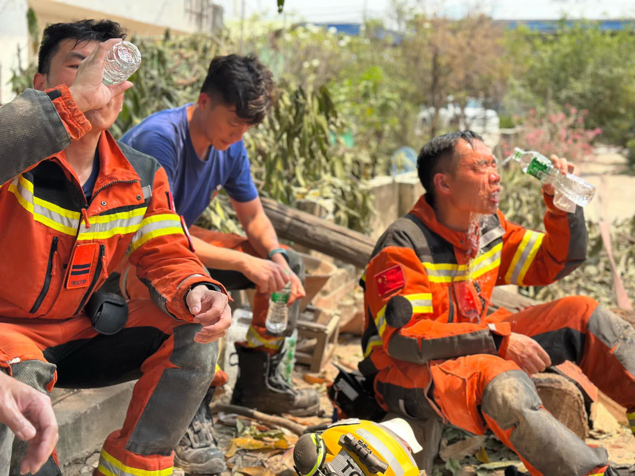 保安局fb持續更新救援隊的搜救行動,昨日深夜(23:15)發帖及相,指連日搜救行動後,現時分批在外搜救及返回營地休息,補充體力。當地傍晚再有餘震,救援隊基地亦感震動。由於天氣炎熱,早上高達42度,晚上亦在30度以上,救援隊會定時消毒營地及臨時洗手間以防瘟疫。當地出現嚴重蚊患,醫管局隨團4名醫生及護士特別留意預防登革熱及瘧疾的問題,每日為救援隊成員做健康檢查,謹慎照顧隊員的健康。而入境處同事亦和領事館聯絡,運送蚊帳到營地以防蚊患。