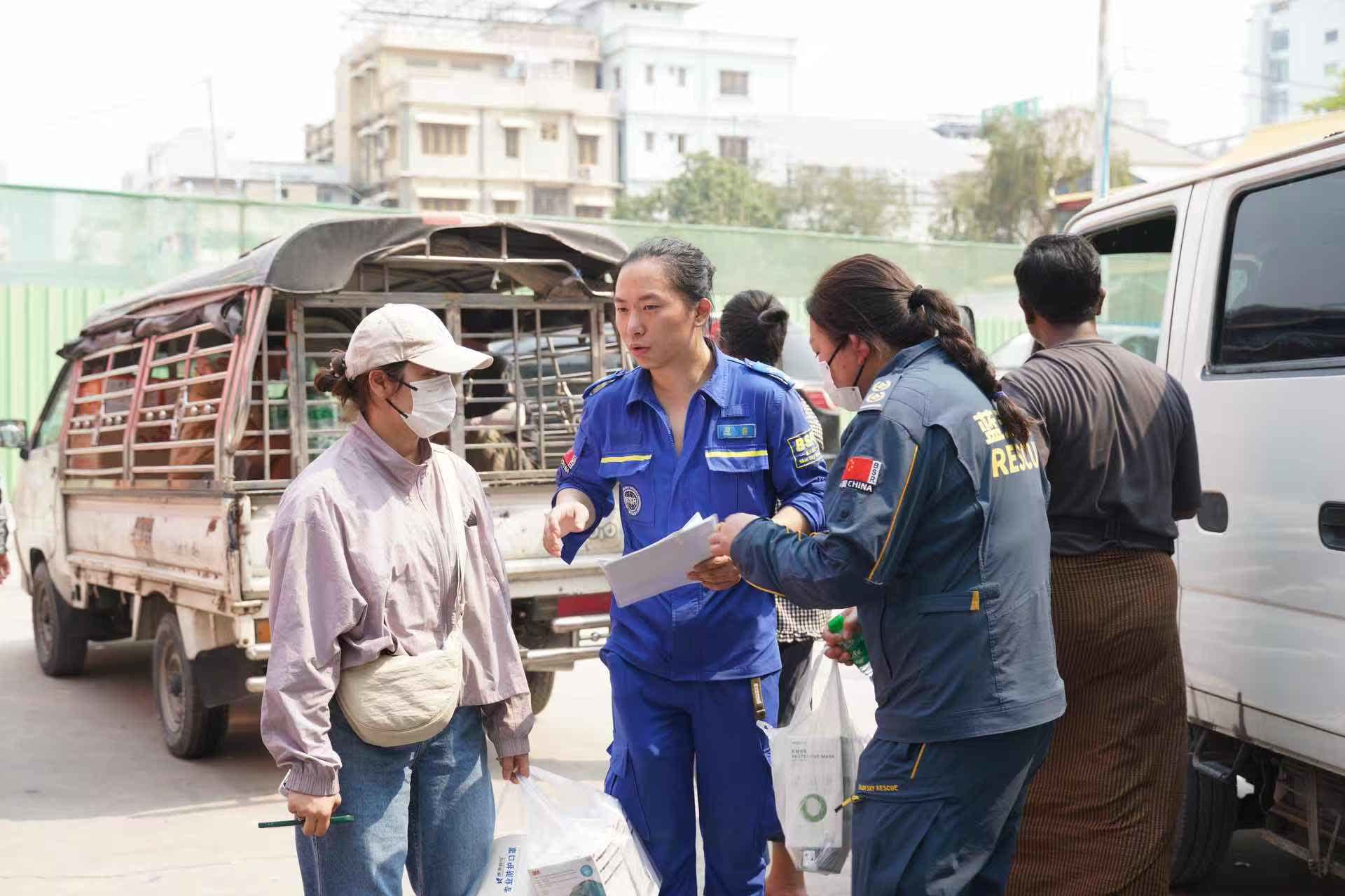 另一位快19歲的緬甸華人志願者也提到,自己也是停課的學生,能幫到無家可歸的人,非常有意義。他說,這幾天在救援現場,看到在一個快坍塌的公寓,救援隊堅持用生命檢測儀尋找生還者,終於聽到幾聲敲擊聲的時候,感覺到了生命的渺小脆弱。他也很感謝中國派出多個救援隊來幫助緬甸,「看到他們來緬甸救援,我的眼淚止不住地落下,非常謝謝他們。」
