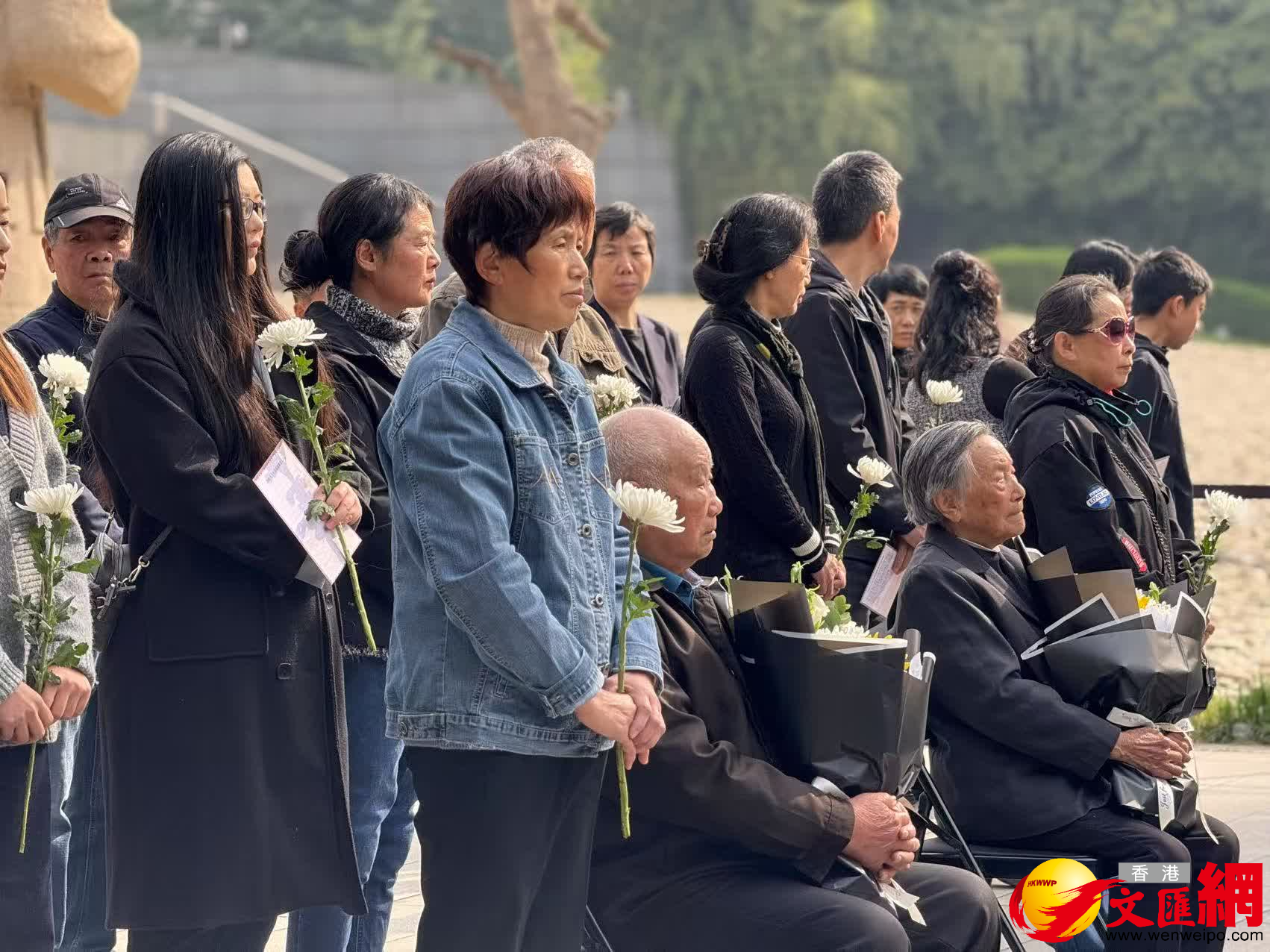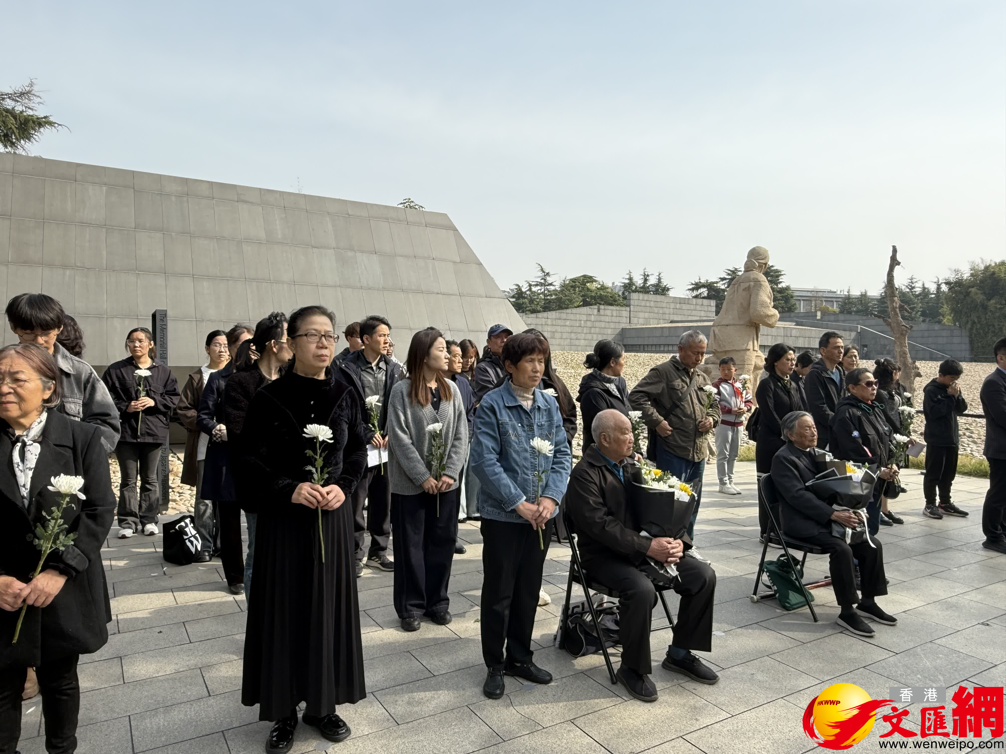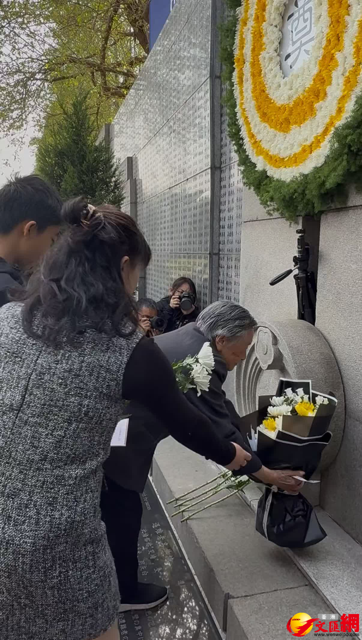 當天上午,2025年南京大屠殺死難者清明祭儀式在紀念館內的「哭牆」前舉行,年逾九旬的南京大屠殺倖存者劉民生和夏淑琴,以及其他南京大屠殺死難者遺屬、倖存者後代、南京大屠殺歷史記憶傳承人、青少年學生代表等共同祭奠30萬死難同胞。