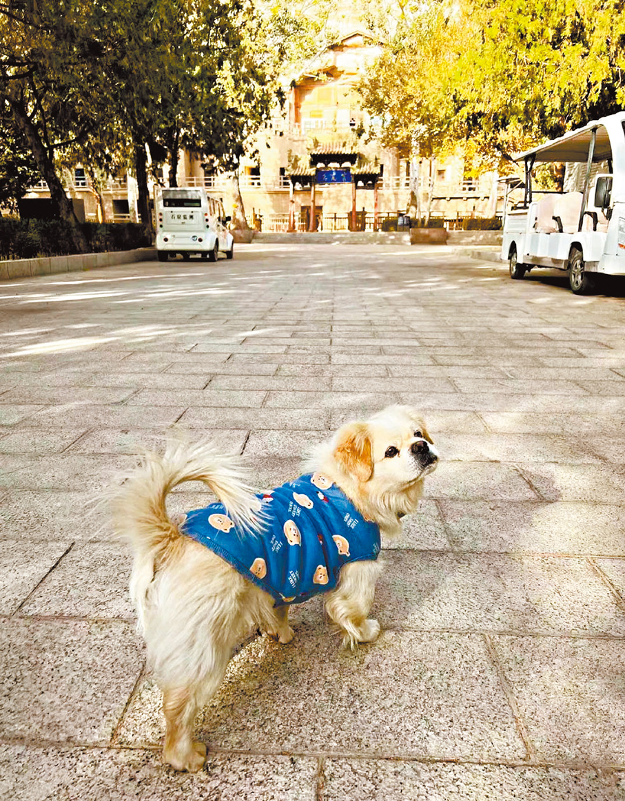 樂樂特別有靈氣,非常勤快,莫高窟的工作人員和遊客們都非常喜歡牠。只要講解員跟牠說:「樂樂,你帶遊客去崖頂。」牠就會引領遊客爬上山崖,去到崖頂做草方格的地方。自己在一旁耐心等候,然後再把遊客領回來。所以現在很多遊客來莫高窟,除了看洞窟,還要特意找樂樂拍照合影。遊客們還給牠送衣服、送食品,即便離開莫高窟後還經常掛念牠,給牠封了一個「莫高樂樂大王」的名號,也許牠生來的職責就是守護莫高窟。