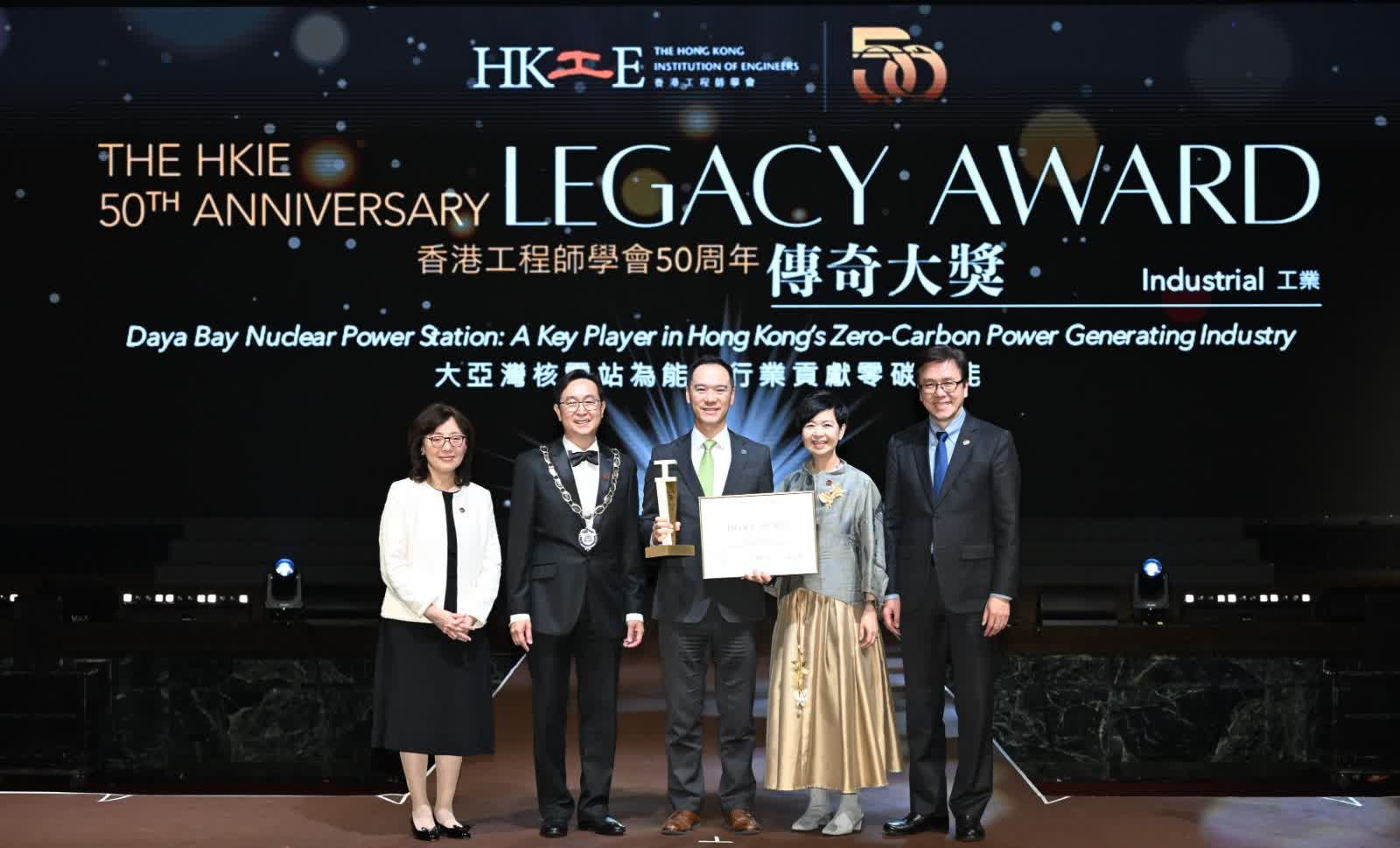 「香港工程師學會50周年傳奇大獎」分創新、工業、基建三大組別,旨在表彰過去50年傑出的工程項目、突破性技術和變革性舉措。大亞灣核電站從100多個提名項目中脫穎而出,先獲選為工業組別五強,取得「卓越獎(工業,1990年代)」,再經評審團嚴謹篩選及公眾投票,奪得該組別的最高榮譽「傳奇大獎(工業)」。