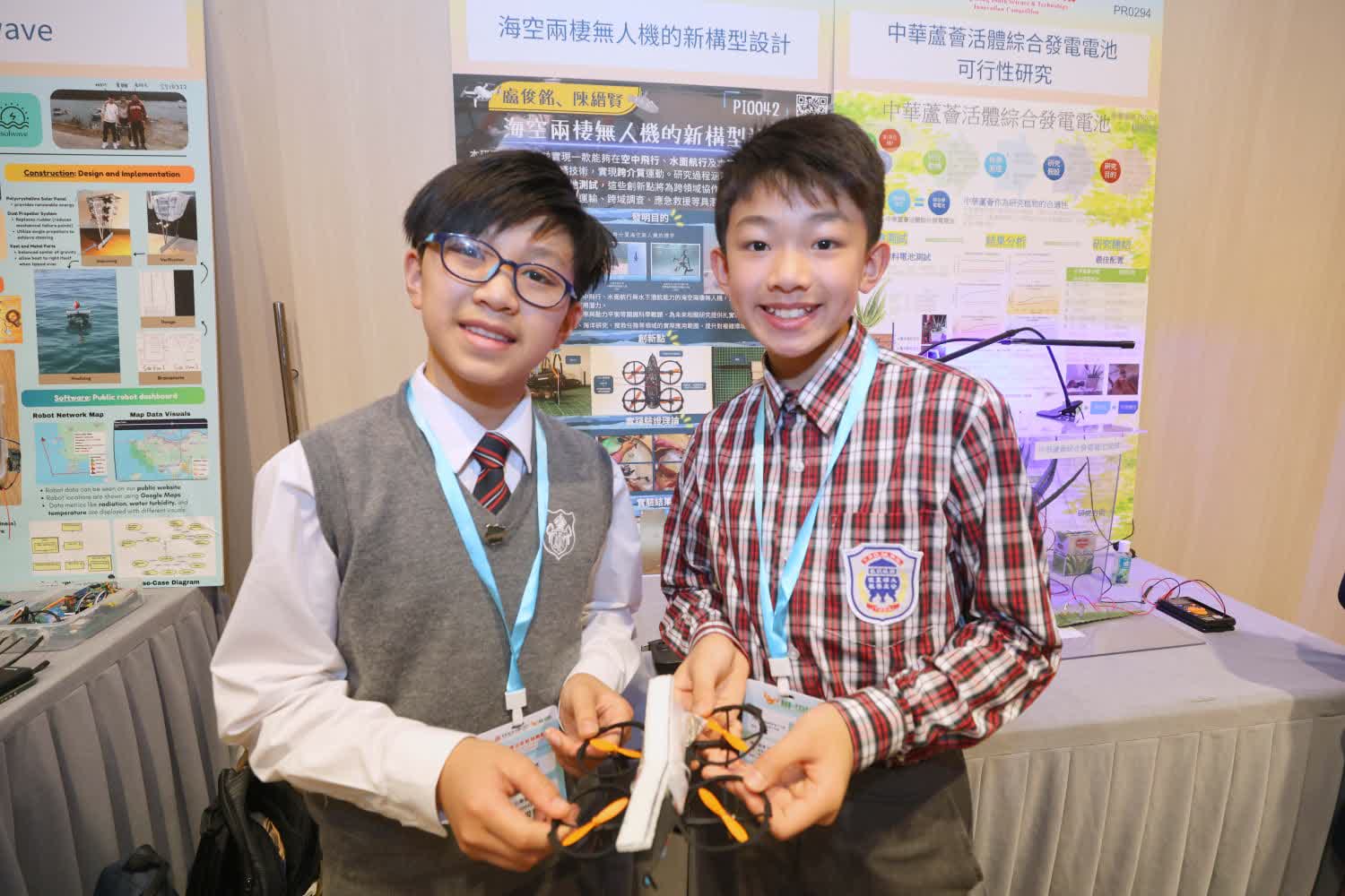拔萃男書院附屬小學的盧俊銘與大埔舊墟公立學校(寶湖道)的陳縉賢憑「海空兩棲無人機的新構型設計」榮獲小學發明品一等獎。該無人機結合可傾轉螺旋槳技術,擬實現空中飛行、水面航行及水下潛航,研究涵蓋零件選型、防水處理及實地測試,為智慧城市、運輸、應急救援等領域提供新思路。