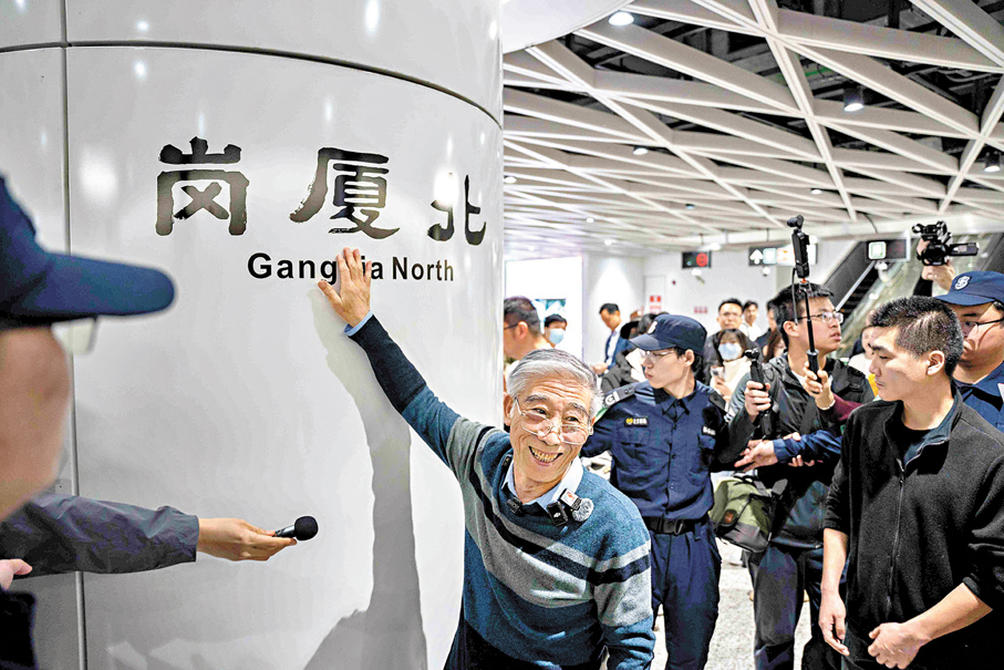 「我的願望終於實現了。」內地清明小長假前夕,曾為深圳地鐵題寫站名的「山西姥爺」王朝珠,在家人陪伴下,踏上了一場圓夢之旅。當天,王朝珠搭乘深圳地鐵10號線,遊覽了崗廈北、冬瓜嶺、孖嶺等「地下藝術館」般的特色車站,與自己提筆揮毫寫下的站名深情「同框」。除港人熟悉的10號線福田口岸的站名由「姥爺」書寫外,1號線的羅湖站、4號線的福田口岸站等66座車站站名均由來自全國各地的9位書法家題寫。