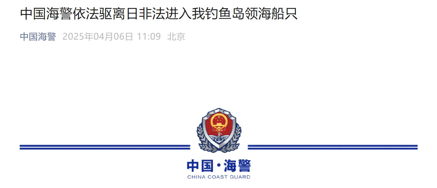 據中國海警微信公眾號消息,中國海警局新聞發言人劉德軍表示,4月5日至6日,日「鶴丸」號漁船非法進入我釣魚島領海,中國海警艦艇依法對其採取必要管控措施並警告驅離。釣魚島及其附屬島嶼是中國固有領土,我們敦促日方立即停止在該海域的一切違法活動。中國海警將持續在釣魚島領海內開展維權執法活動,維護國家領土主權和海洋權益。