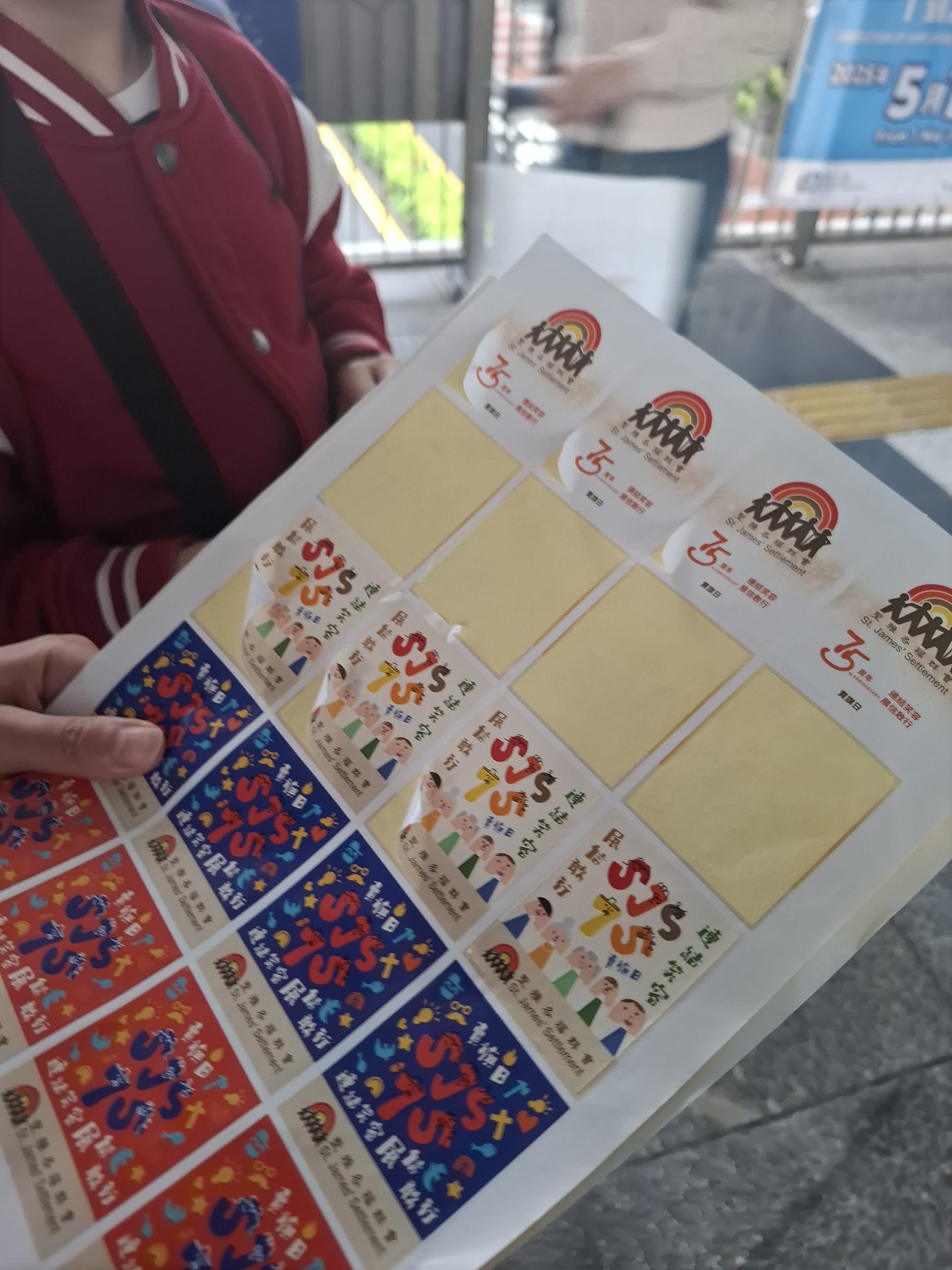 透過高才通計劃來港2年多的周錫晨,早前曾參加人才辦舉辦的廣東話班,在家常與妻子徐悅和11歲兒子聖越練習,今次舉家參與賣旗,笑言是鍛鍊一家人社交能力的好機會。而為免人多時手忙腳亂,聖越和媽媽更想出先把貼紙角落拉出,以方便撕出貼紙。