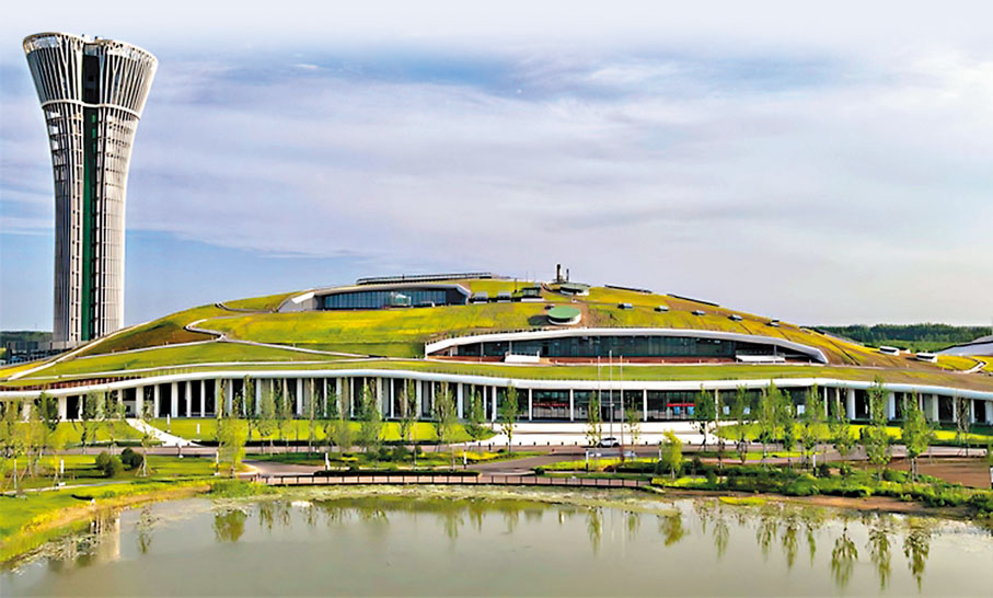 從胡各莊出來,開車10分鐘即可看到一座覆土式「花園」—雄安「無廢城市」宣教基地之一雄安光大生態產業園。