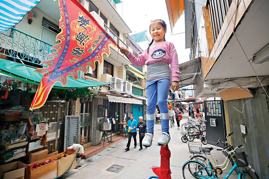 香港文匯報記者昨日更直擊新興街街坊會選拔「色芯」,只見被稱為「色芯」的小演員站在一根鐵支架上「凌空飄起」,不少小演員膽識過人,顯得毫無懼色。