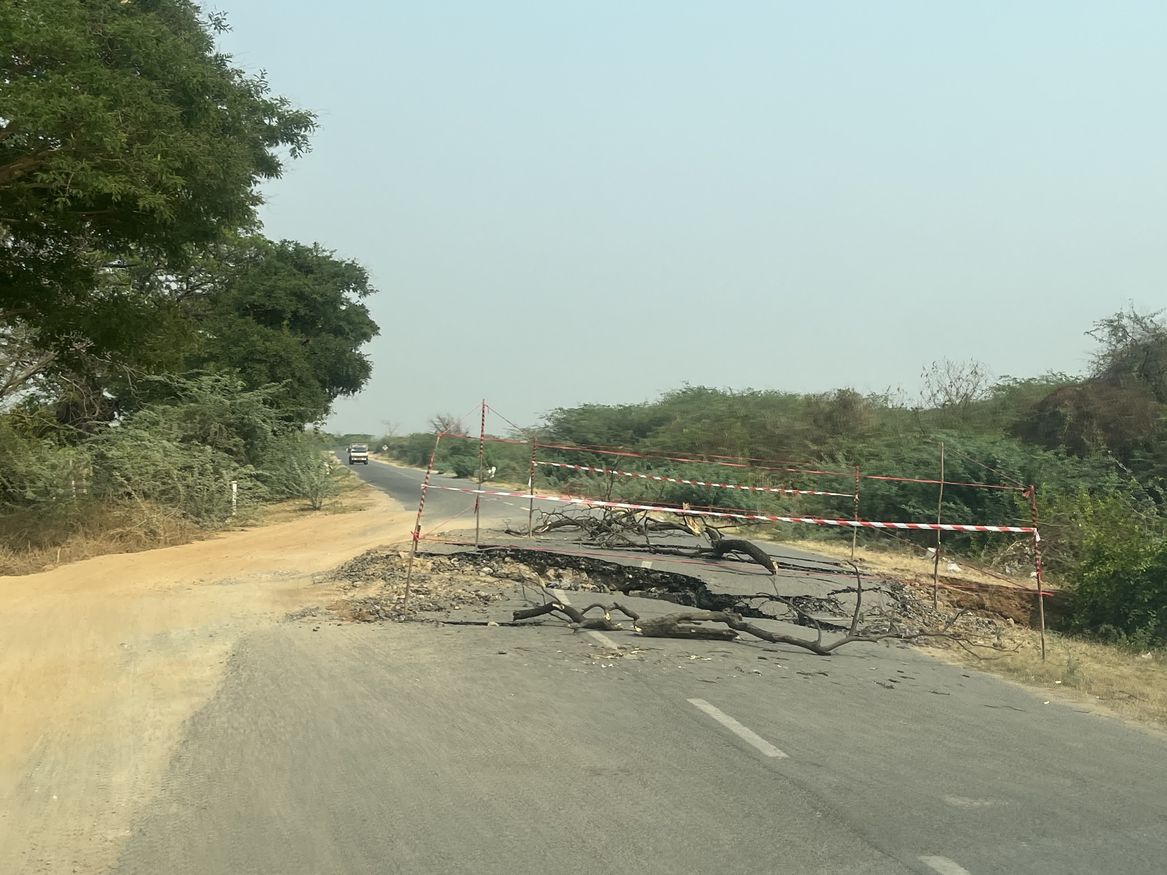 慢慢地,離曼德勒越來越近,開始出現地面的起伏,有嚴重的路段裂開的地面都不一樣高低,像是迷你大裂谷一般。
