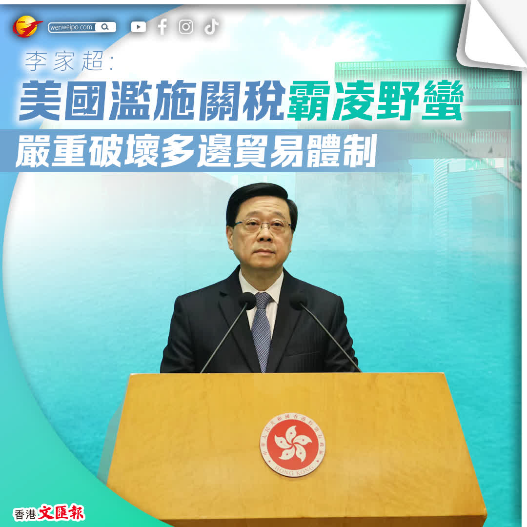香港文匯報訊,行政長官李家超今日(8日)出席行政會議前見記者。李家超表示,上周,美國對多個貿易夥伴徵收所謂「對等關稅」,其中對香港加徵34%關稅,加上早前加徵的20%關稅,累計徵收54%關稅,美國不再奉行自由貿易,肆意破壞國際共同建立的世界貿易規則,霸凌野蠻,損害全球貿易,嚴重破壞多邊貿易體制以及全球化進程。