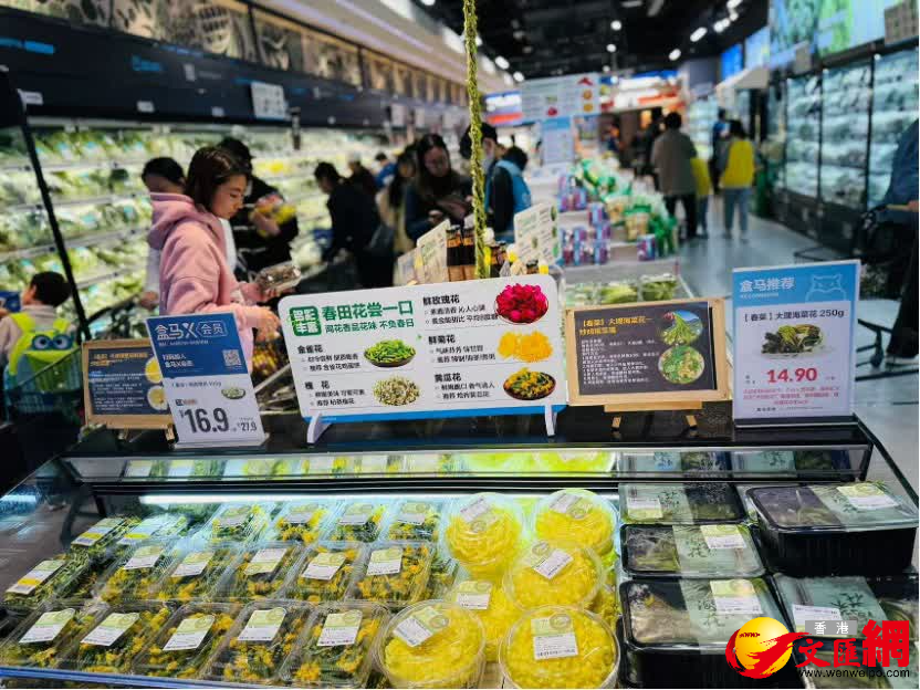 以往,可食用菊花多用於高端餐飲擺盤或傳統藥膳,而廣東中山小欖鎮經過十年品種改良培育出的「糖心菊」,因花芯糖分富集、口感清甜,直接生食也毫無苦澀感,成功打入大眾消費市場。盒馬廣東區域採購負責人蘇香表示,中山菊花通過盒馬渠道首次進入零售市場,並覆蓋全國門店,上市僅一周便售罄,復購率位居春菜品類前列,其中香港消費者的購買佔比顯著提升。