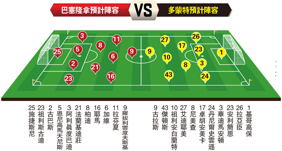 巴塞隆拿預計陣容