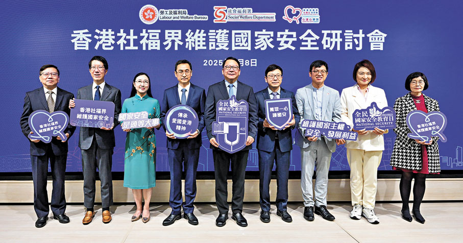 香港文匯報訊 香港特區政府勞工及福利局、社會福利署和香港社福界心連心大行動昨日聯合舉辦香港社福界維護國家安全研討會。政務司司長陳國基致辭時表示,隨着香港國安法和《維護國家安全條例》的實施,香港可以在安穩環境下,集中精力發展經濟,改善民生。然而,國家安全風險可以突如其來,我們不能掉以輕心,必須保持警惕。我們要繼續做好國家安全教育、宣傳和推廣的工作,培養市民自覺、發自內心及主動地維護國家安全,讓維護國家安全的意識植根民心。