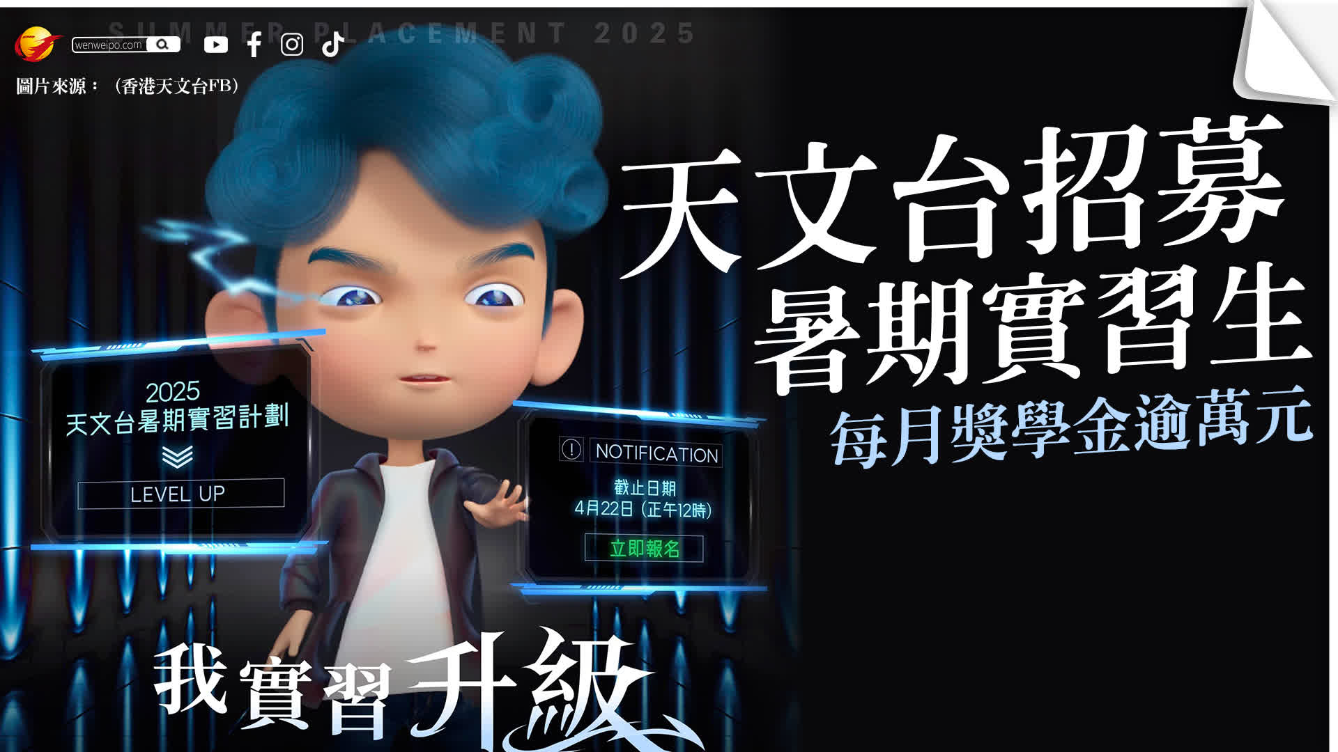 香港天文台推出2025年暑期實習計劃,獲錄取的同學能在經驗豐富的導師指導下,在天文台進行短期項目或研究工作,學習並獲取與修讀科目或興趣領域相關的工作經驗,每月還能獲得約11200元的獎學金!