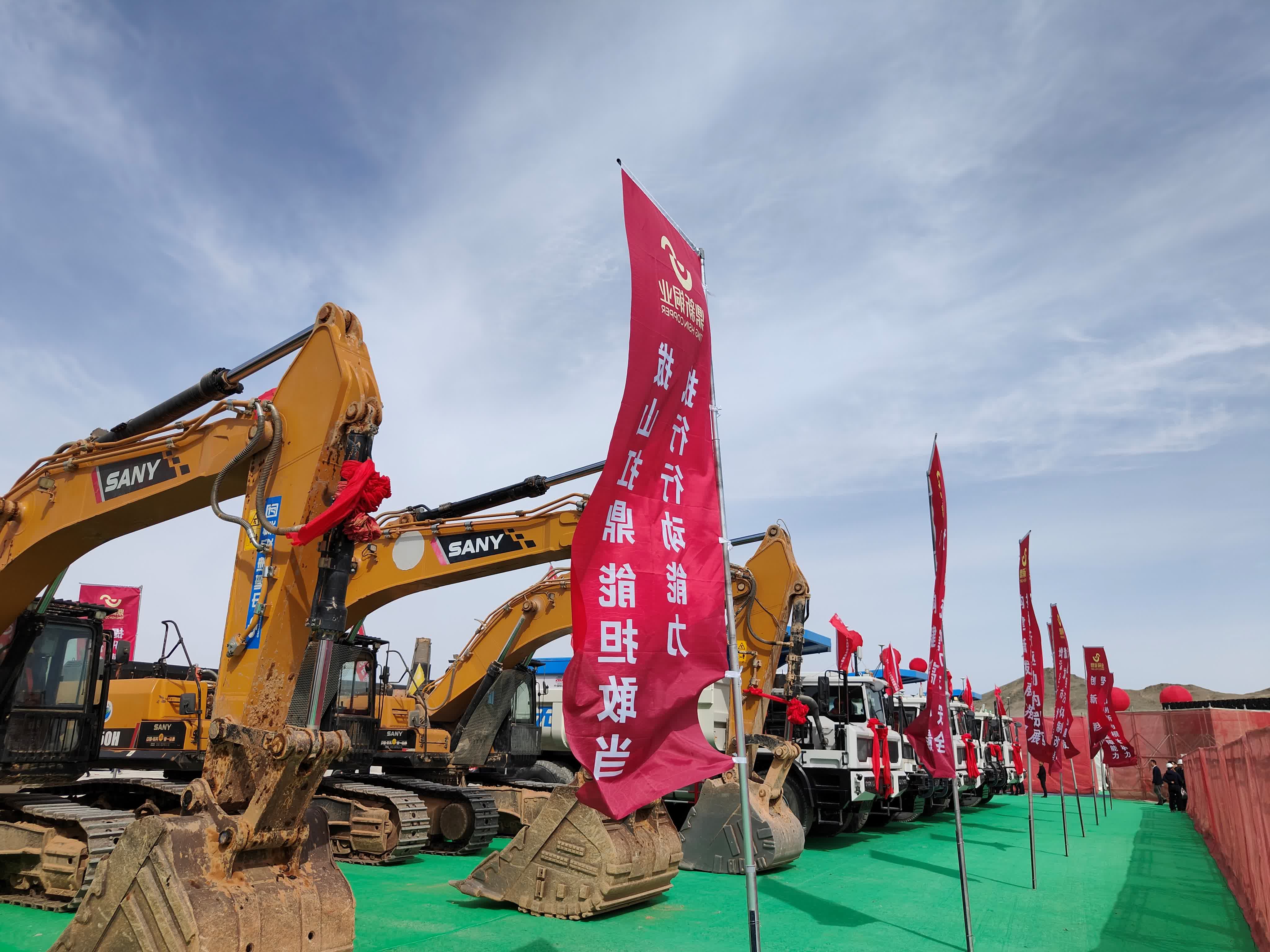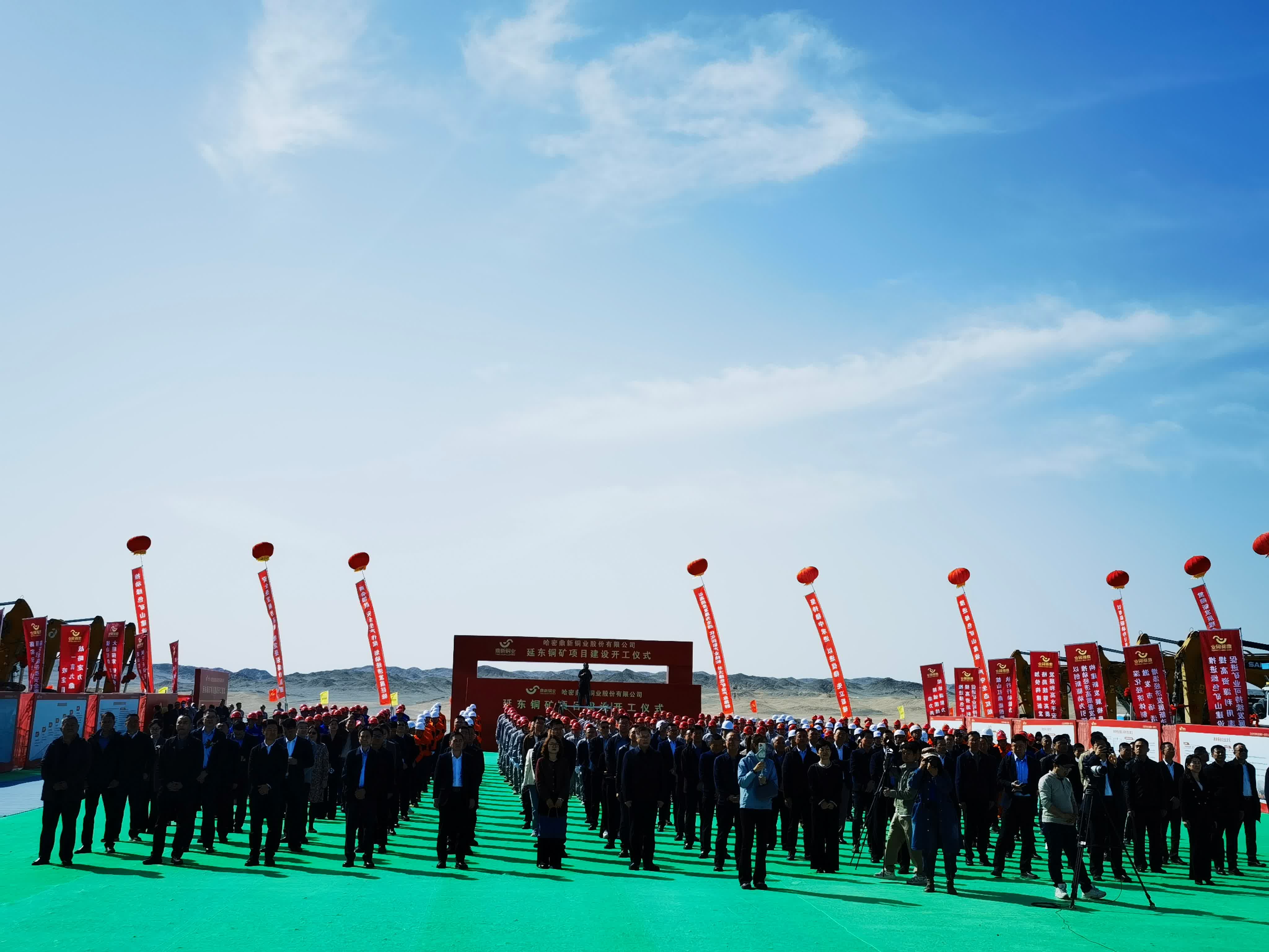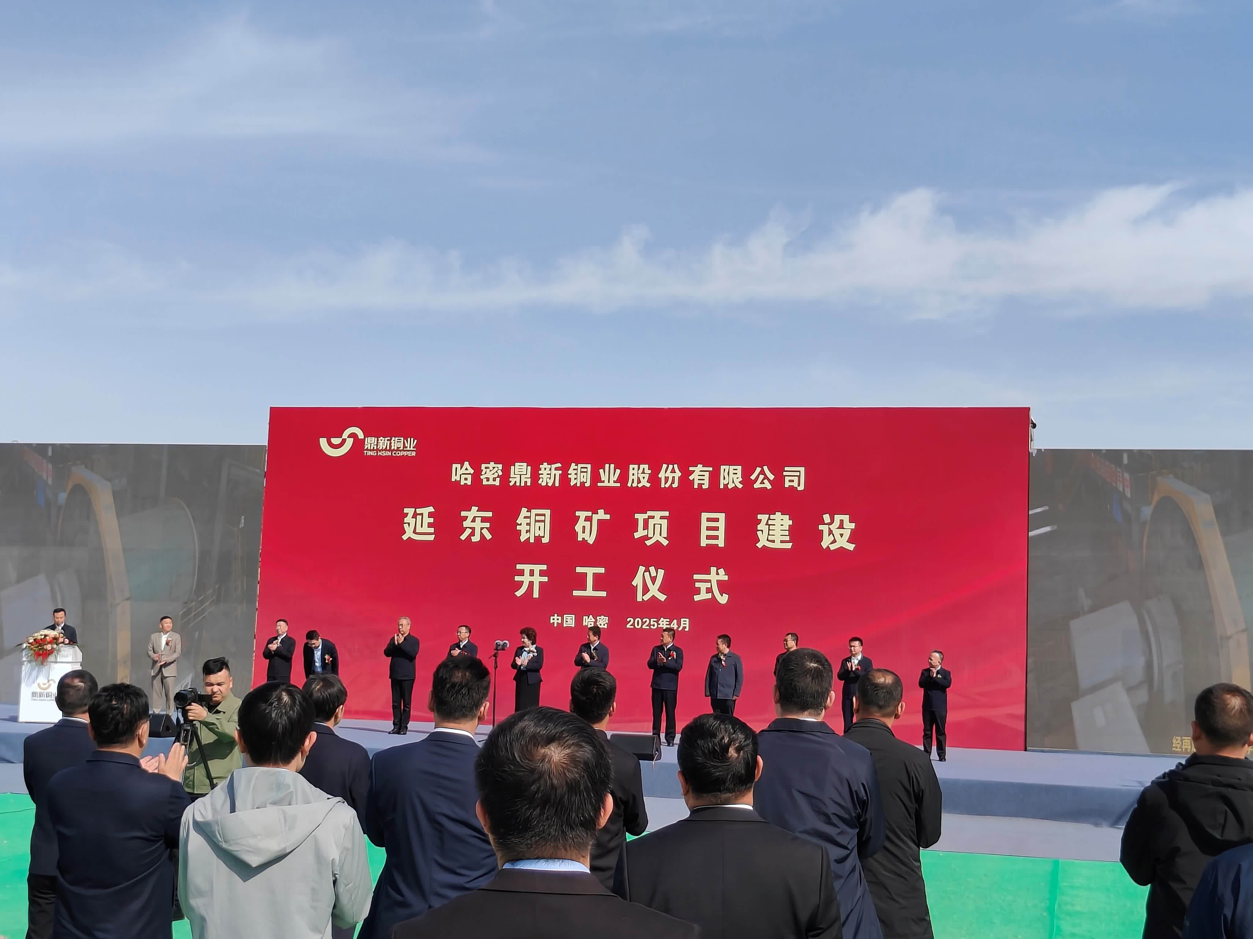 哈密以南,戈壁深處,延東銅礦的開工儀式在蒼茫的天地間拉開序幕。數十台重型機械整齊排列,鋼鐵身軀披掛着鮮艷的紅綢,在荒涼的戈壁中格外醒目。4月9日,哈密鼎新銅業延東銅礦建設項目在哈密市伊州區延東銅礦礦區舉行開工儀式。新疆維吾爾自治區人大常委會黨組書記、主任祖木熱提・吾布力出席活動,宣布項目正式開工。
