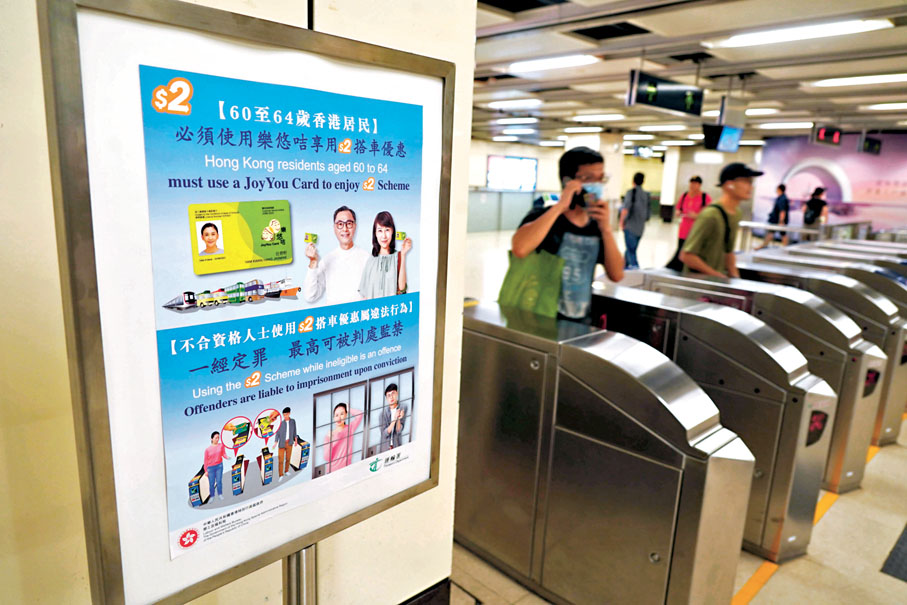 「實政圓桌」議員田北辰指,有很多並非長者的人濫用長者兩蚊乘車優惠,猶如「無掩雞籠」,建議特區政府應與港鐵商討大幅調高罰款額。孫玉菡表示,長者兩蚊乘車優惠自去年8月全面使用樂悠咭後,冒用別人的卡是很大的罪名,港鐵亦已增加了罰則,不但已提高阻嚇性,亦已有真實案件告上法庭,呼籲市民切勿冒用別人的樂悠咭。