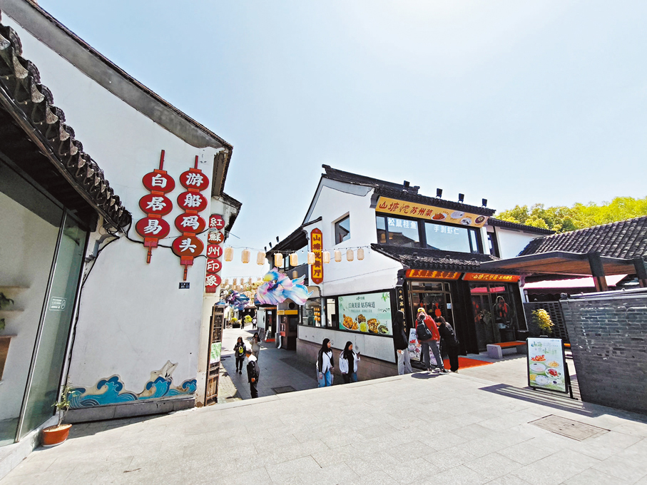 位於蘇州古城西北角閶門外的山塘歷史文化街區,當中的山塘街,又稱「七里山塘」,是江蘇蘇州姑蘇區一條有將近1,200年歷史的步行街,其以「白提」為主軸的獨特環境。山塘街區內,橫跨山塘河上的古石橋有七座,山塘街東起山塘橋,西至新民橋,由通貴橋向西南延伸,整體呈「T」字形格局,兩側以商業建築為主。整個街道呈河路並行的格局,山塘沿街兩側的大多數古建築,匯集玉涵堂、蘇州商會博物館、古戲台等主要景點,被稱之為「老蘇州的縮影、吳文化的窗口」。