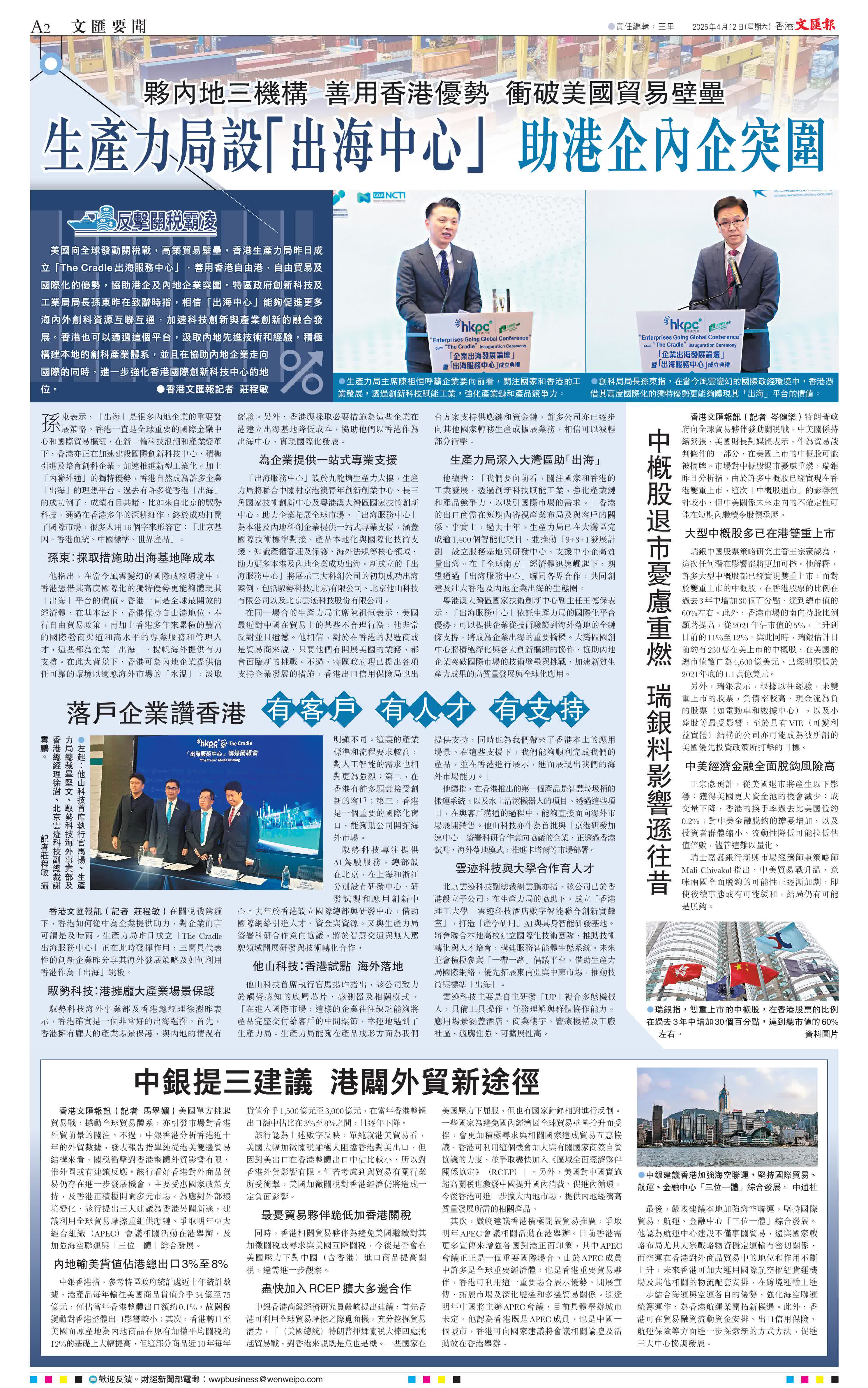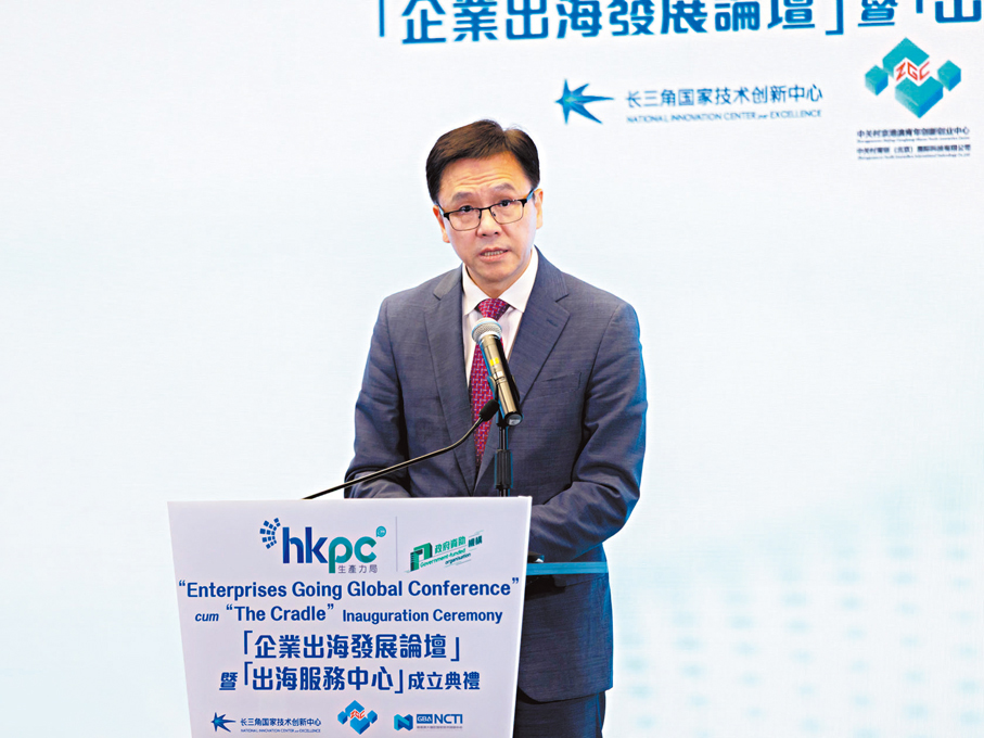 (香港文匯報記者 莊程敏)美國向全球發動關稅戰,高築貿易壁壘,香港生產力局昨日成立「The Cradle出海服務中心」,善用香港自由港、自由貿易及國際化的優勢,協助港企及內地企業突圍。特區政府創新科技及工業局局長孫東昨在致辭時指,相信「出海中心」能夠促進更多海內外創科資源互聯互通,加速科技創新與產業創新的融合發展。香港也可以通過這個平台,汲取內地先進技術和經驗,積極構建本地的創科產業體系,並且在協助內地企業走向國際的同時,進一步強化香港國際創新科技中心的地位。