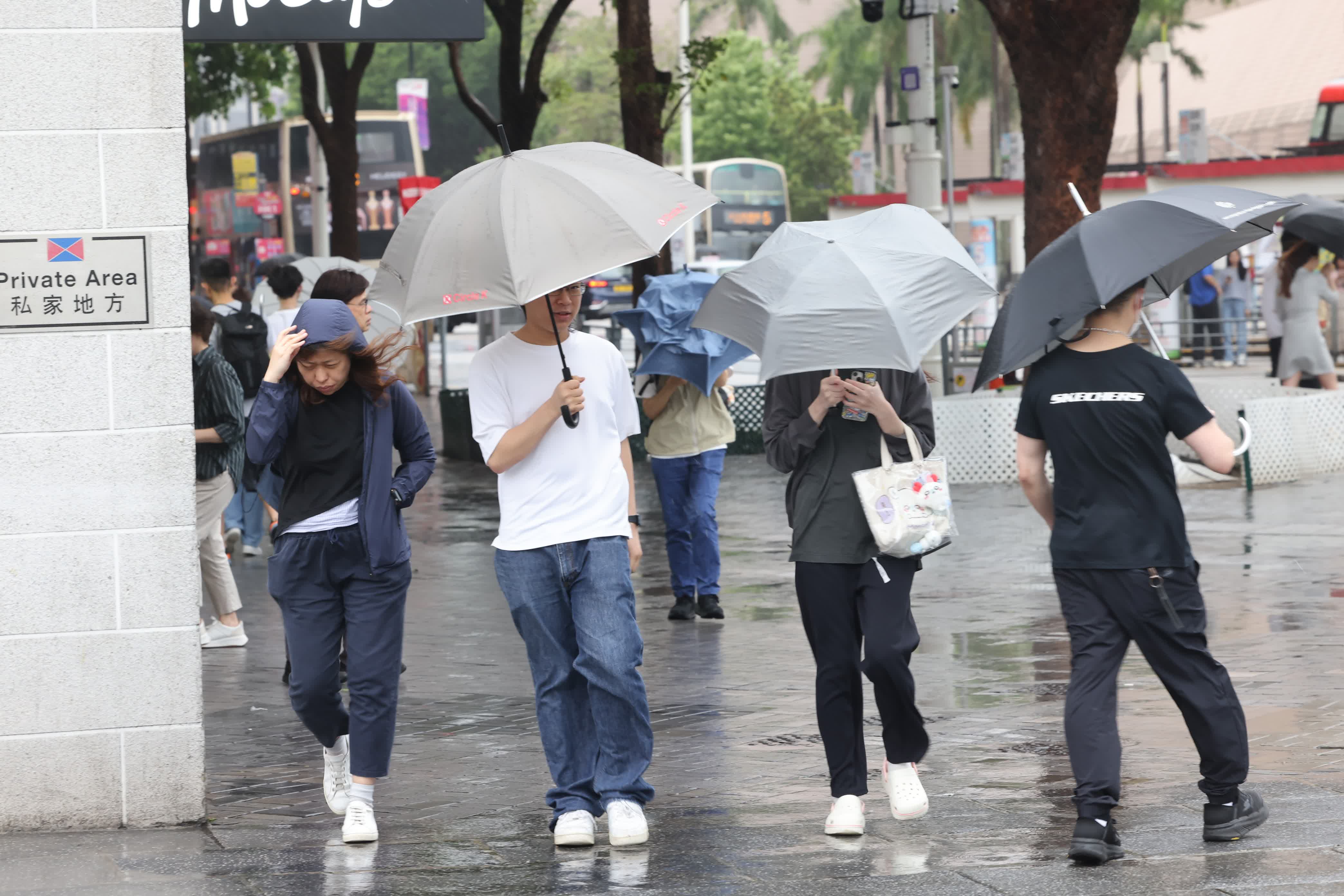 香港文匯報訊(記者 蕭景源)受到一道冷鋒正逐漸橫過廣東沿岸影響,香港天文台於今日(12日)下午3時50分發出特別天氣提示,預料強陣風吹襲香港。如身處室外,請儘快到安全地方躲避。至下午4時15分,天文台再表示,與冷鋒相關的驟雨及狂風雷暴會在未來數小時影響珠江口一帶,部分地區雨勢較大,亦可能有猛烈陣風。下午4時50分,香港文匯報記者實時觀察,現時維港兩岸正下著狂風大雨,街道上市民均要打傘擋雨,但因為大風關係,不少市民的雨傘也被強風吹至變型,狼狽不堪。