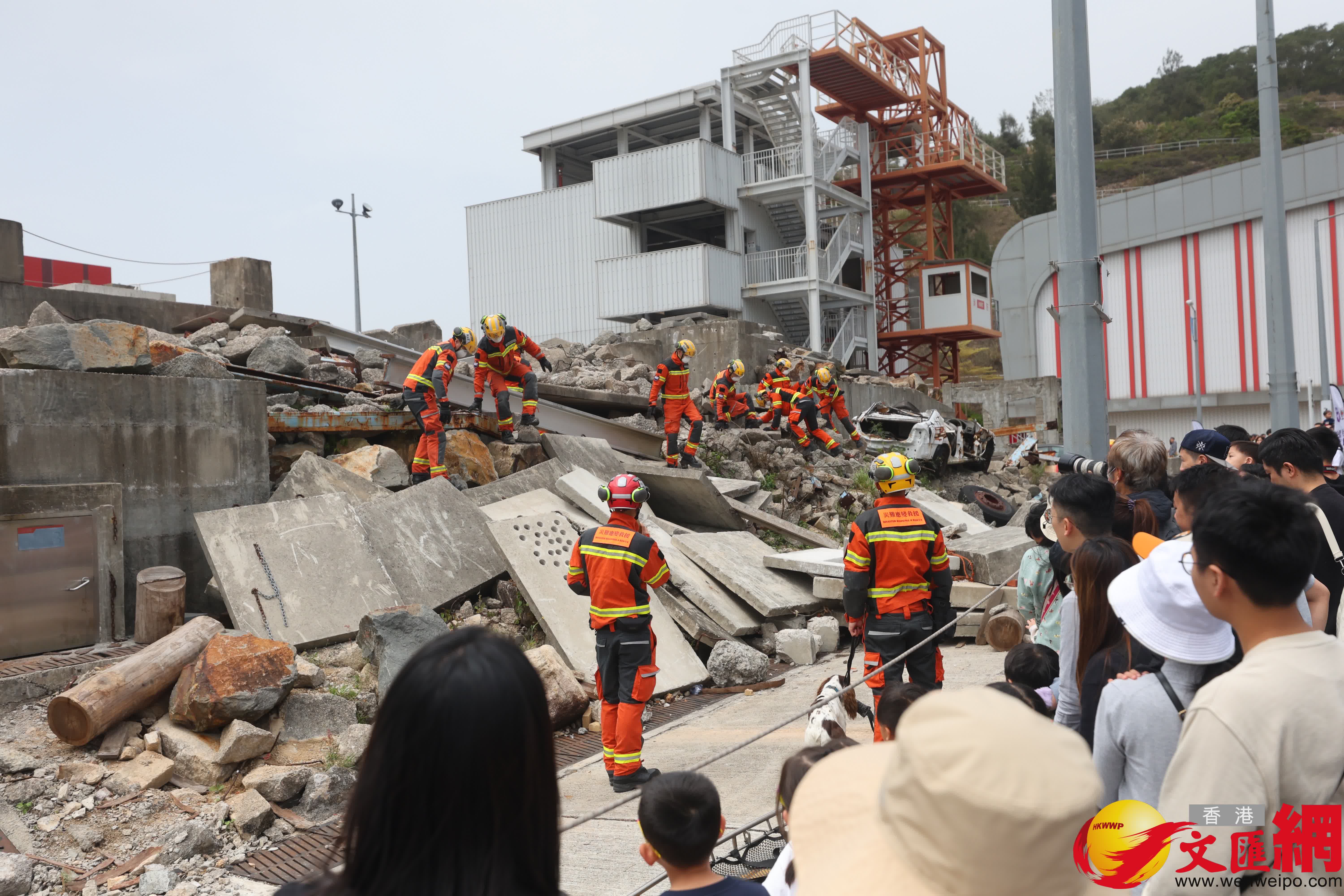 今日的開放日節目非常精彩,吸引不少大小朋友到來參與。有各式各樣內容豐富的展覽和示範,包括升國旗儀式、消防及救護車巡遊、滅火及救援示範、救護訓練示範、高空拯救示範、急流拯救、火警調查犬示範等,巿民還可以參與互動的體驗區和攤位遊戲,而重點當然是消防處在國家安全領域的工作介紹。