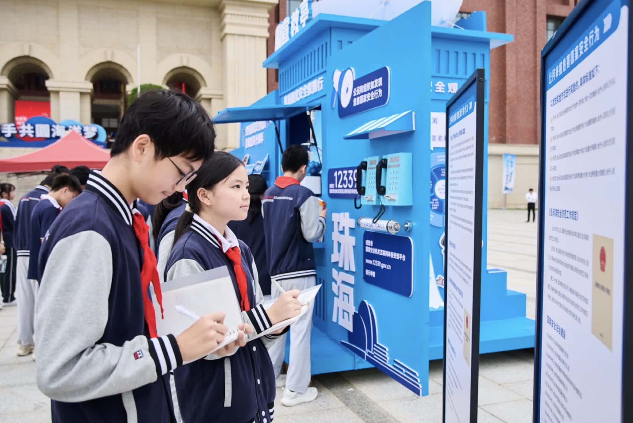 家長朱先生告訴記者,現在國家安全教育主題活動更加多元化,包括寓教於樂、親子互動、創意表達等方式,讓少年學生更切實地體驗到國家安全的重要性。記者了解到,珠海近年便陸續推出「國安號」公交專線、主題客輪、港珠澳大橋遊專線巴士,以及「國安號」低空飛行器,打造流動的國家安全宣傳名片。今年還在中山大學珠海校區授牌成立「總體國家安全觀教育基地」,「國家安全宣教亭」巡展多家學校。珠海市委國安辦有關負責人表示,國家安全宣教亭集觀展、學習、互動、傳播於一體,以微展覽的形式,通過主題宣傳、案例分享、互動問答等,向高校師生普及政治安全、網絡安全、文化安全等知識。
