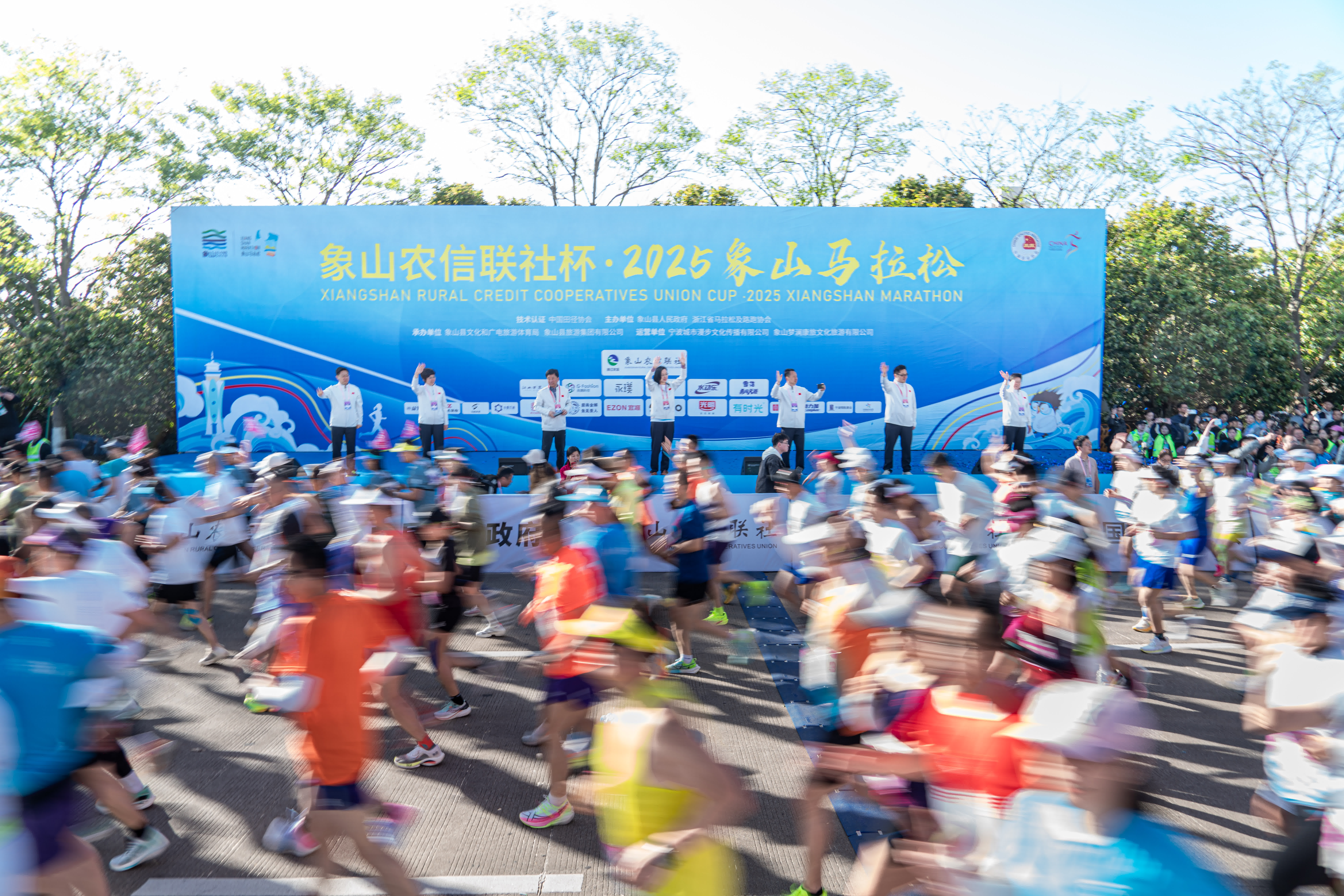 「砰」,一聲槍響。上午7:30,來自12個國家和地區、31個省(市、自治區)的的12000名參賽者從象山人民廣場正式開跑。一路上經過中國針織品名城爵溪、寧波象山亞帆中心、松蘭山濱海旅遊度假中心、大目灣東大河綠道帶等眾多經典地標,盡情享受運動帶來的快樂,沉浸式感受象山壯美海岸線的自然風光。
