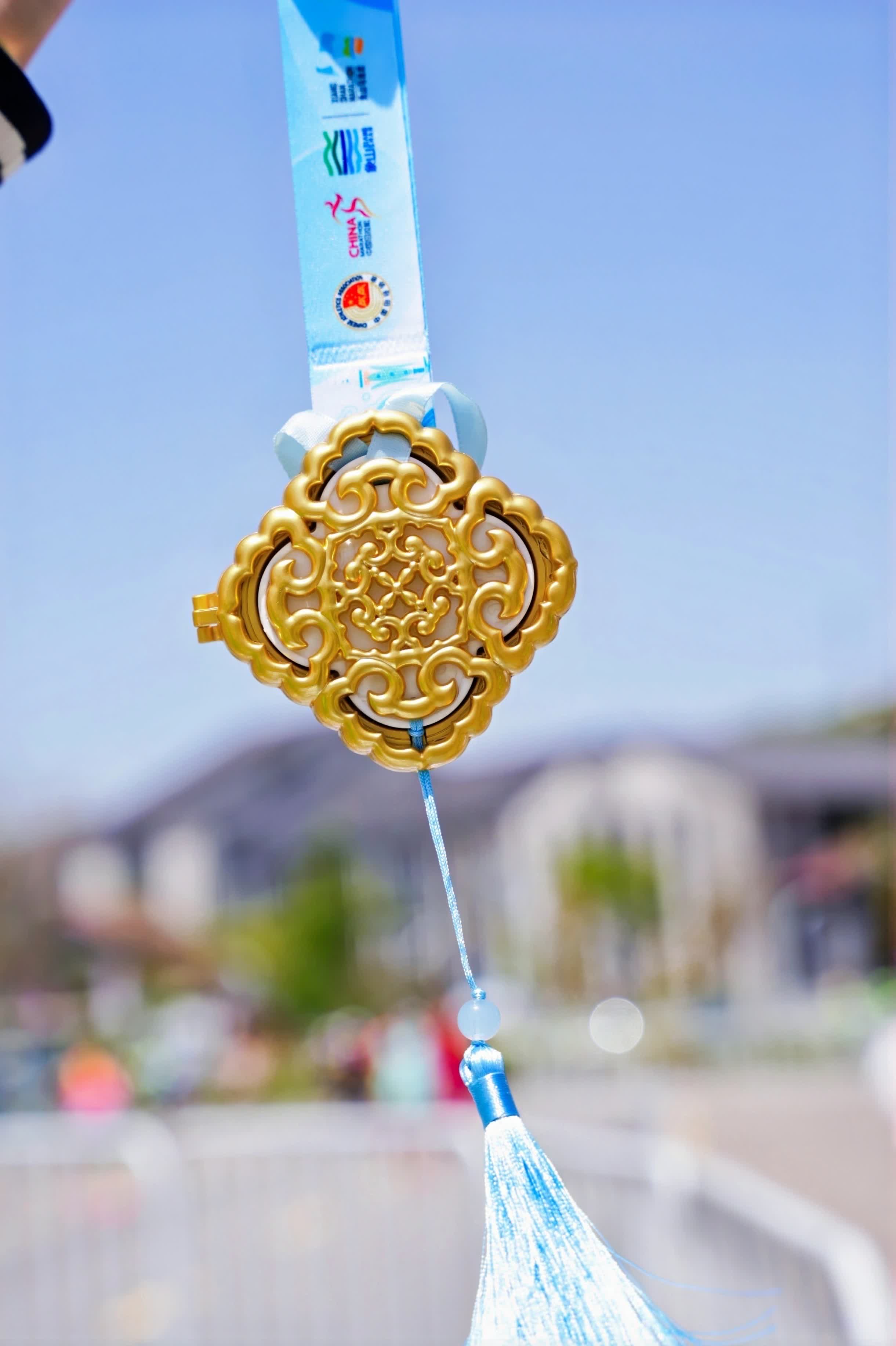 值得一提的是此次賽事的獎牌設計。獎牌以「跨越海峽的守護與團圓」為主題,主體融合象山非遺如意娘娘神像剪影與奔涌的海浪,象徵海上守護神對勇者的庇佑與馬拉松的澎湃生命力。獎牌整體採用了別出心裁的翻蓋型設計,外殼是鏤空型金屬框,採用中國傳統的 「如意紋」 組合而成;內質採用精緻白色擴香石,擴香石所散發淡雅的海洋型香氣,用海風的清新激勵選手突破自我、勇創佳績。