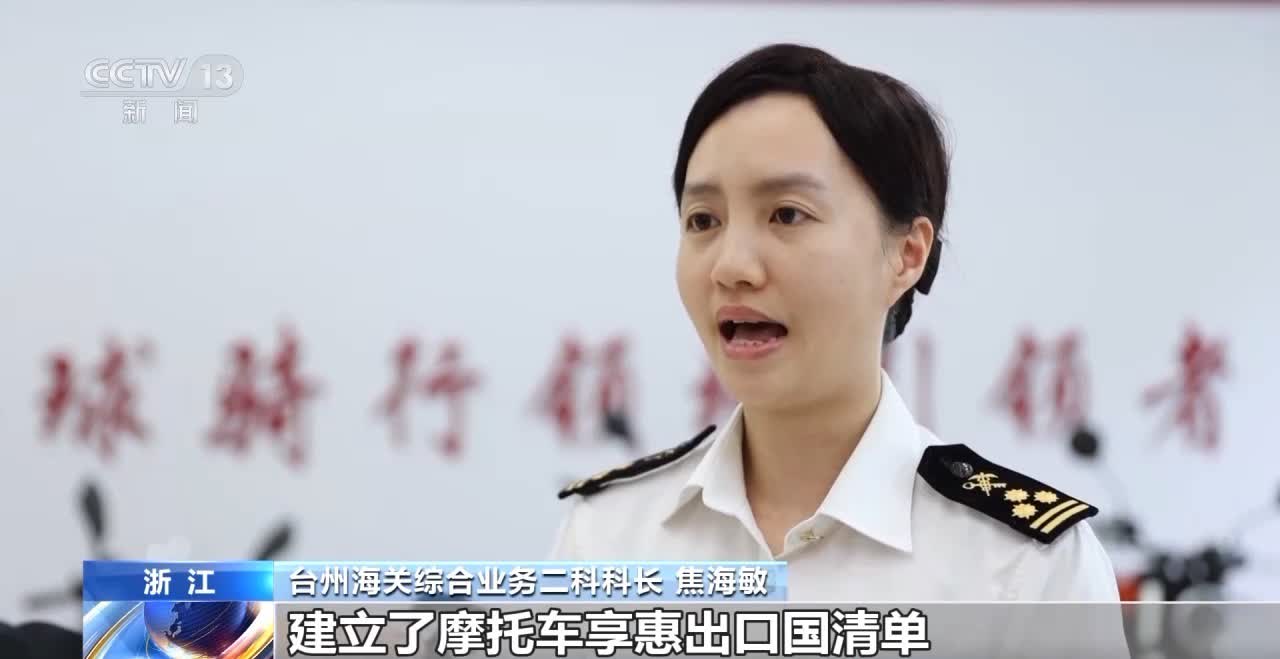 台州海關綜合業務二科科長 焦海敏:建立了摩托車享惠出口國清單,從關稅減讓、原產地規則等方面為企業提供精準指導,幫助企業用好用足政策,加快拓展周邊市場。
