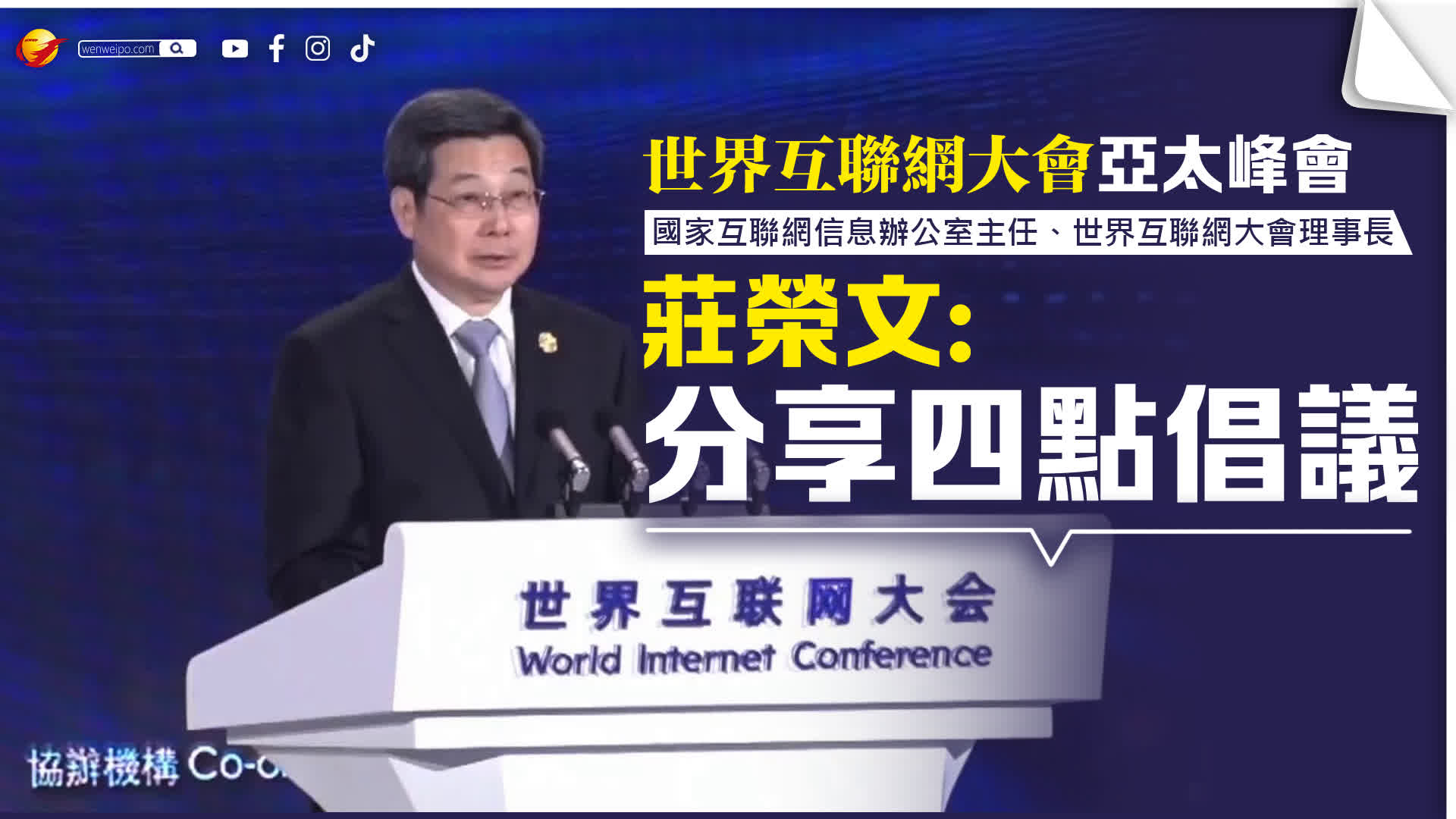 世界互聯網大會亞太峰會今日(14日)起一連兩日在香港會議展覽中心舉行,今日上午舉行開幕式。國家互聯網信息辦公室主任、世界互聯網大會理事長莊榮文致辭。