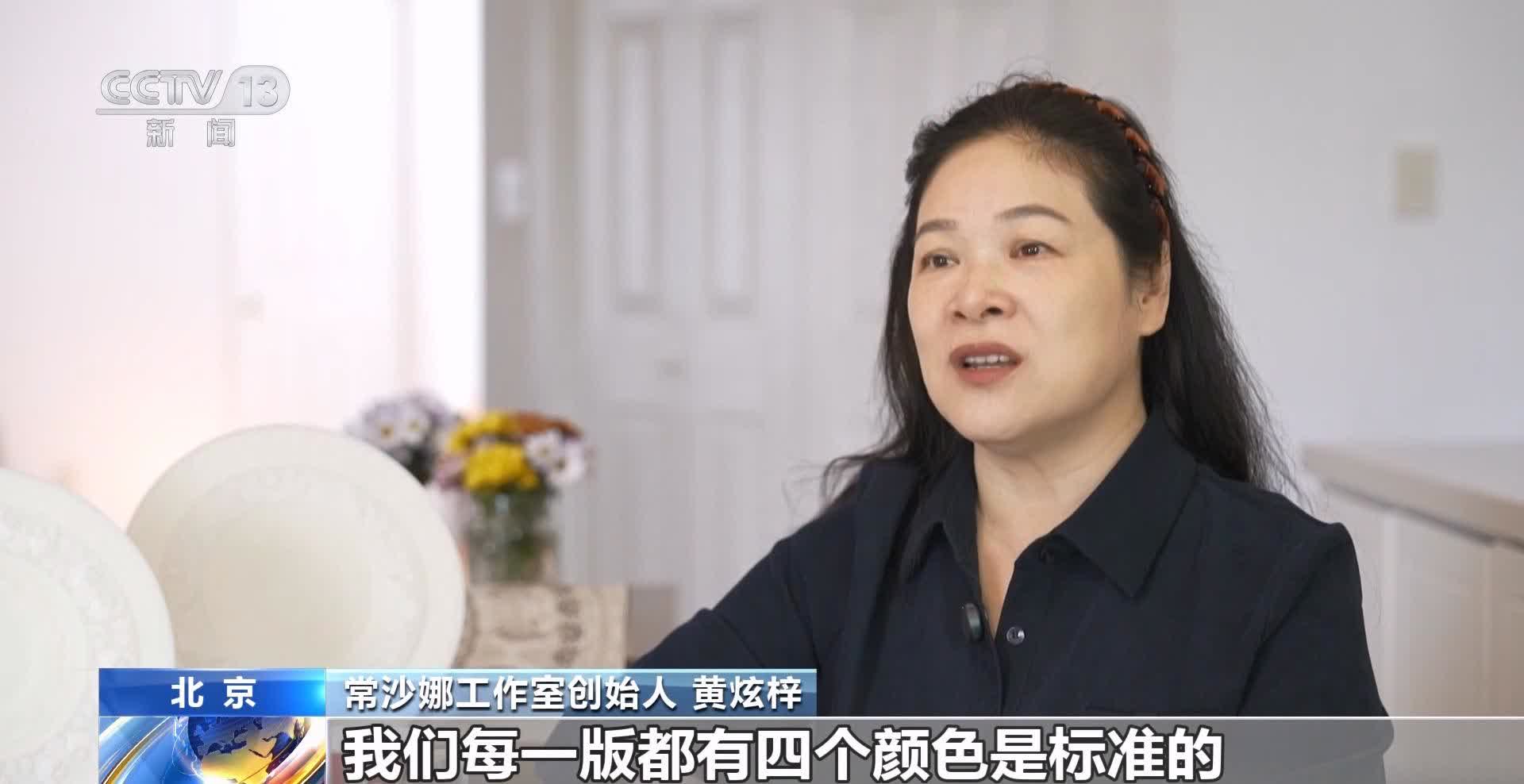常沙娜工作室創始人 黃炫梓:我們每一版都有四個顏色是標準的,以中國的傳統圖案的色彩色調來的,是根據敦煌莫高窟歷朝歷代對於顏色深中淺的概念的截取。