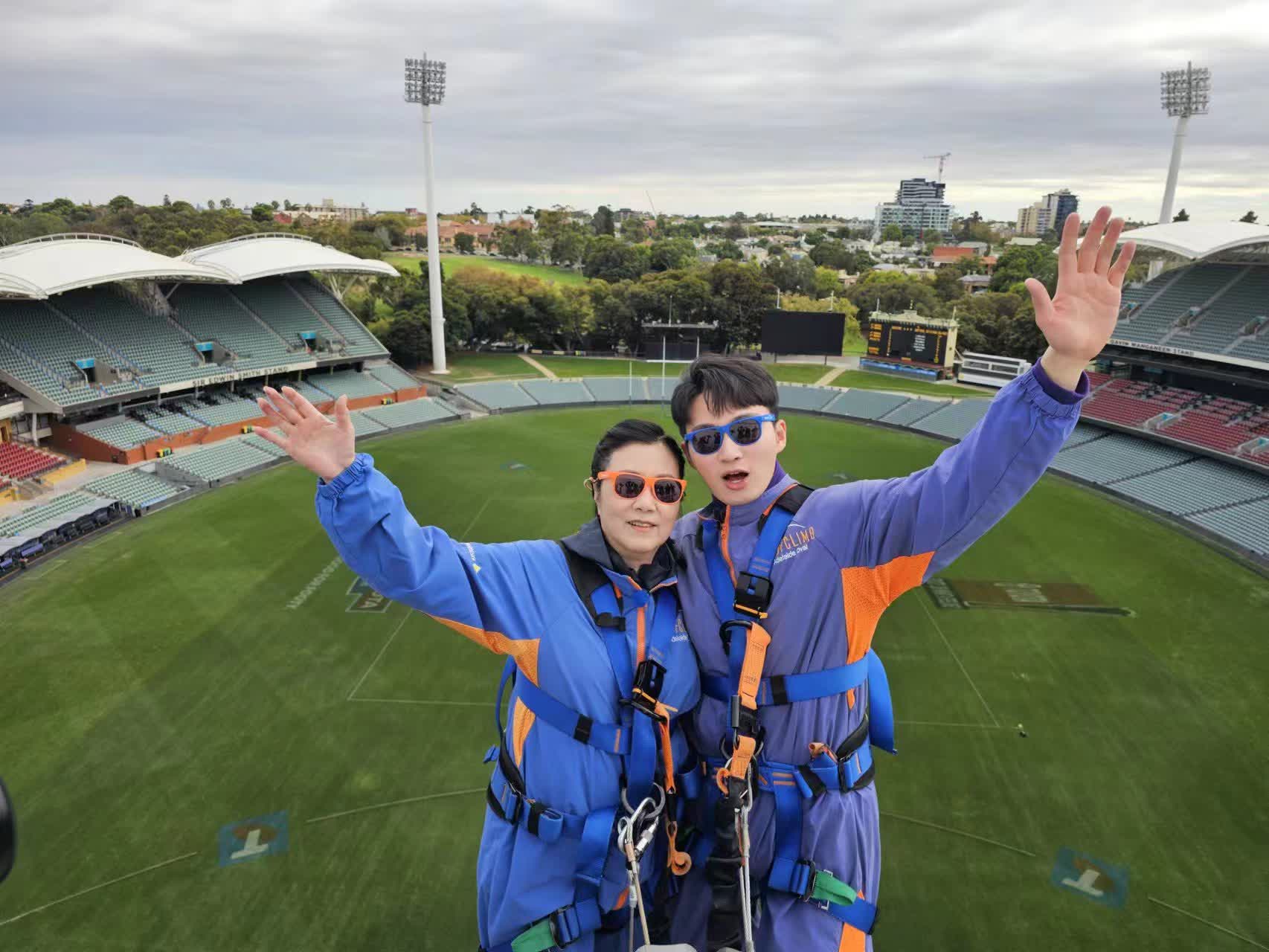 是次澳洲之旅特別之處,阿姐先後獻出了多個第一次,其中一個,就是Adelaide Oval Roof Climb。行程中,阿姐拿出驚人意志力克服自身畏高,與嘉洛仔齊齊登上位於橢圓球場的165呎高空打卡兼體驗Roof Climb。另外,走紅超過半個世紀、譽滿全球的阿姐,是次拍攝吸引了當地媒體的關注及採訪,並與嘉洛仔齊齊登上了當地報章的頭條新聞,認真威水!