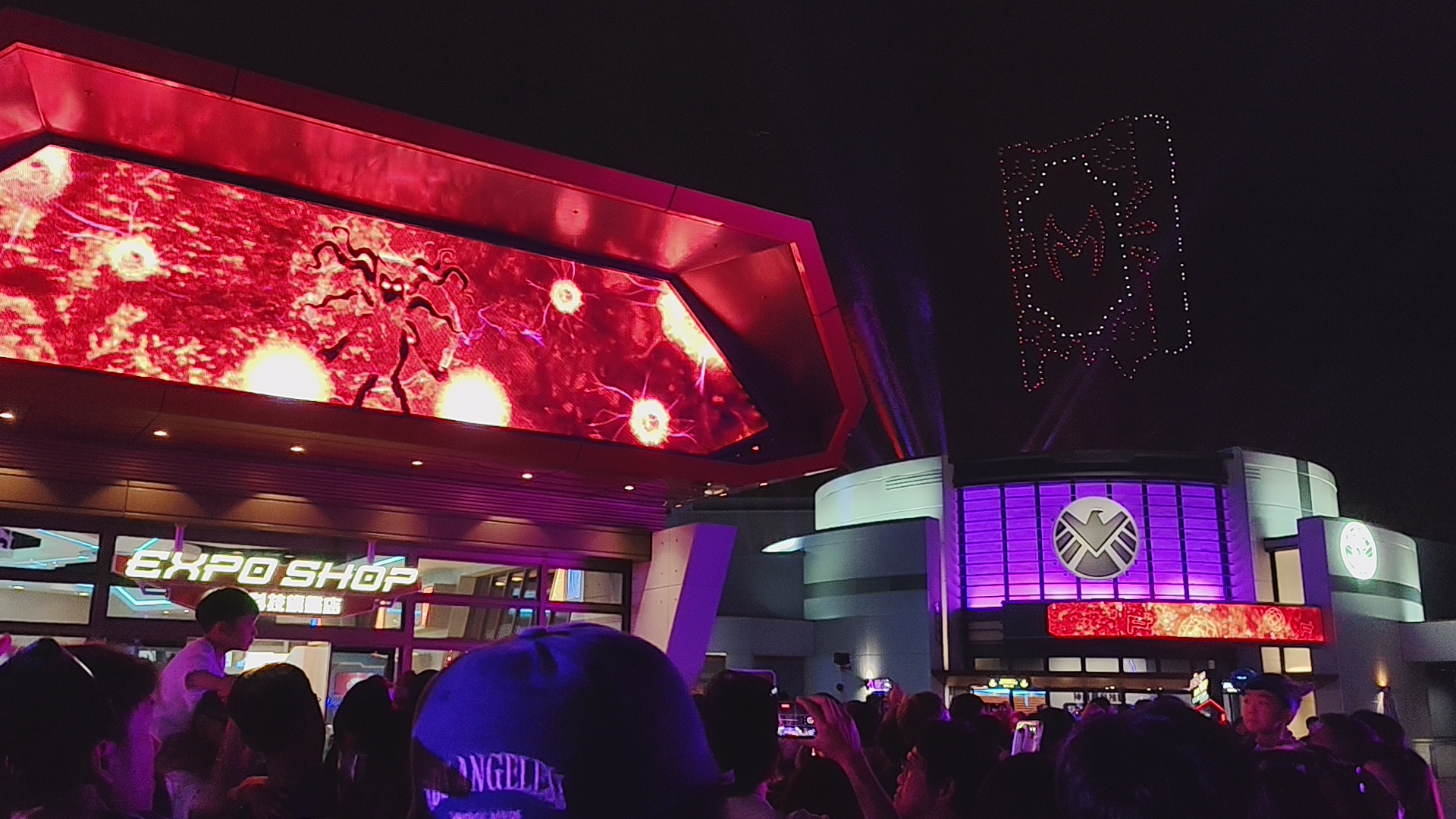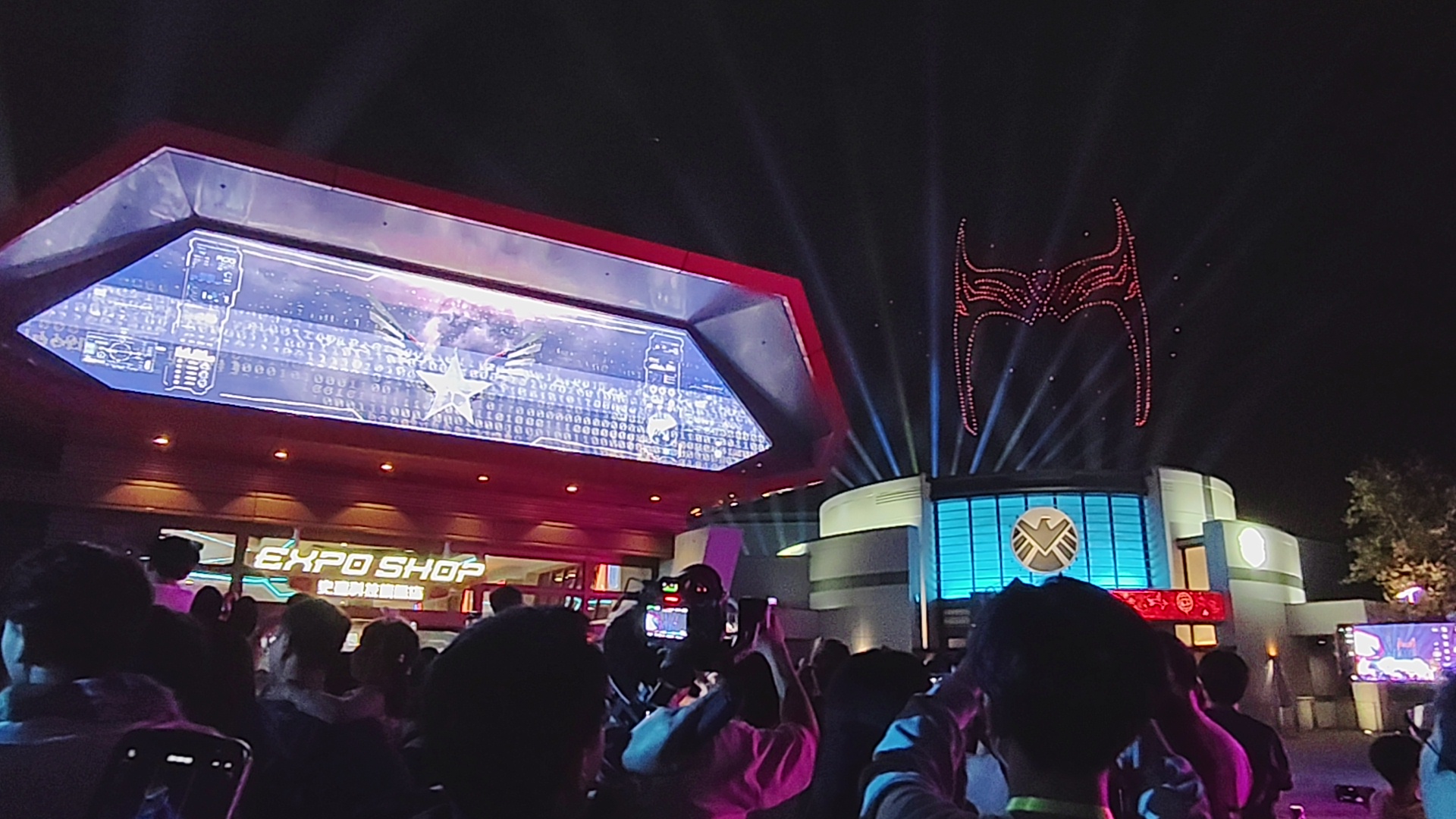 首先,深受歡迎的Marvel主題夜間無人機表演會於明日世界以全新故事登場,黑化了的紅女巫企圖於史達科技展進行大規模的入侵行動﹔夜間無人機表演「空中決戰紅女巫」以全新圖案,配合魅惑人心的特效,營造出激烈的戰火效果。鐵甲奇俠、蜘蛛俠、蟻俠、黃蜂女、奇異博士與新任美國隊長Sam Wilson紛紛緊急出動,群起迎戰。