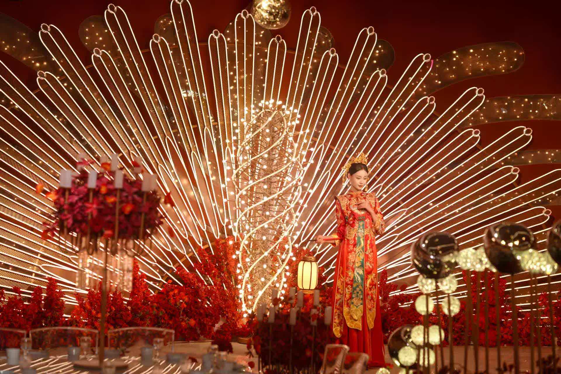 採訪當日,劉先生在此舉行婚禮,圍觀的除了親朋好友,還有在此停留休息的司乘人員。「法式花園」「孔雀之謎」「天空之境」「錦繡盛宴」……中式的、西式的、中西結合的,你理想中的婚禮是什麼風格的?十種風格迥異的婚禮大廳總有一款讓新人們心動。