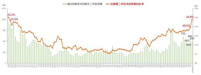 美聯物業首席分析師劉嘉輝指出,4月短短的首16日,逾300萬至400萬元二手註冊量已達597宗,佔3月全月661宗高達90%,甚至比起1月全月565宗及2月全月460宗更高,可見相關銀碼註冊量升勢急勁。鑑於簽署買賣合約至遞交到土地註冊處註冊登記需時,4月首16日註冊個案一般主要反映3月市況,而有關銀碼顯著急升相信主要反映2月底財政預算案宣佈將徵收100元印花稅的物業價值上限由300萬元提高至400萬元的效應。