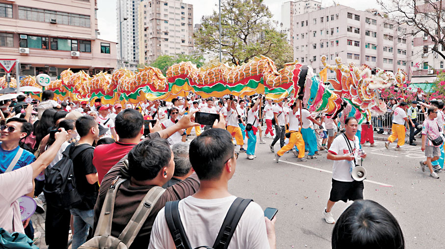 香港文匯報訊(記者 洪澤楷)昨日是農曆三月廿三日天后誕,全港多區都有慶祝活動,當中以元朗舉行的十八鄉「天后寶誕會景巡遊」規模最大。會景巡遊於疫情間一度停辦,去年是疫後首次復辦,今年規模進一步擴大,多達37支表演隊伍由元朗市中心出發,巡遊至大樹下天后古廟。香港文匯報記者於現場直擊,上午10時市中心已人頭湧湧,大批市民與旅客在巡遊道路兩旁駐足觀賞。有沿途的餐廳表示,受北上消費與海外旅遊影響,復活節假期首數天的生意減少,不過,昨日人流明顯增多,生意比平日增長約20%。有首次參與巡遊的馬來西亞旅客盛讚香港包容中西新舊等不同文化。