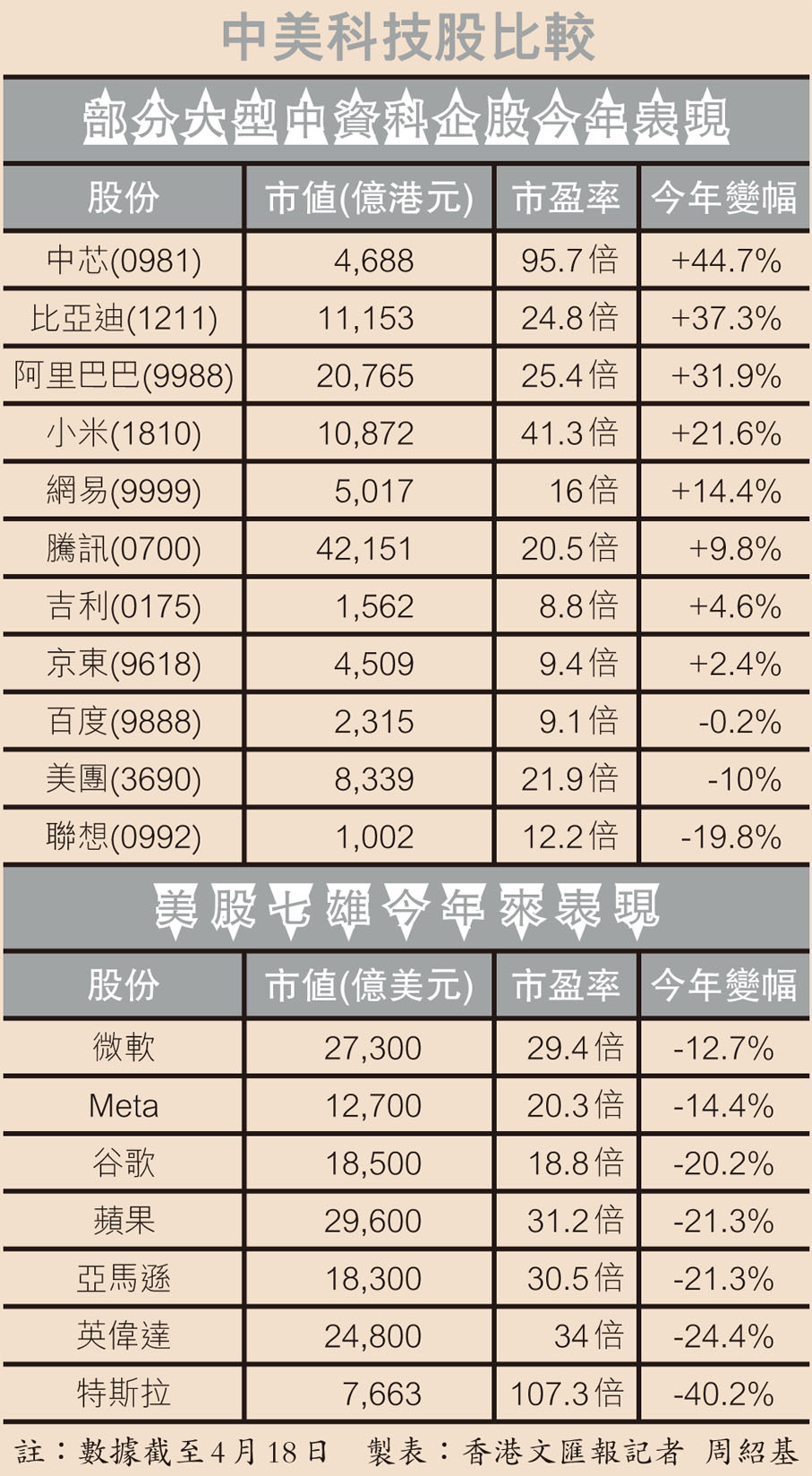 事實上,中國近年為應對美國在科技方面的「卡脖子」,致力發展新質生產力,培養本國的科技企業。在港股之中,最為人熟悉的當屬中芯國際(0981)與比亞迪(1211),該兩股在踏入今年也表現相當突出,年內升幅暫時高達44.7%和37.3%。至於快將來港作第二上市的寧德時代,也會增加資金選擇港股科企的標的範圍。
