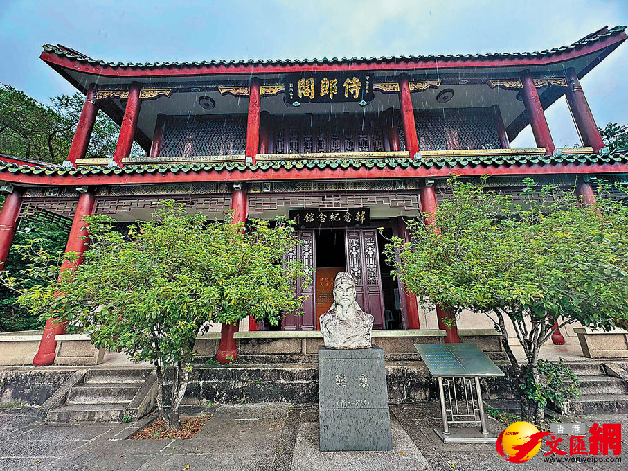 一進入韓愈公祠的大門,便迎來一條長長的名家書法長廊,裏面陳列着或是後代書法家書寫的韓愈詩詞,或是他們對韓愈充滿欽佩的題詞。沿着走廊向上,經過石牌坊和允元亭,下一站來到侍郎閣,跨過石門走進去,看到韓愈威嚴而高聳的雕像,雕像的目光炯炯有神,似乎能穿越人的肉體直擊人的心靈,猶如韓愈透過千年時光注視着每位前來瞻仰他的遊客。牌匾懸掛着「泰山北斗」「百代文宗」,高度評價了他的成就。來到韓愈公祠,必看的景點是韓愈勤政廉政展覽館,館內介紹了韓愈的人生經歷,以及他坎坷的仕途,和他被貶到潮州之後的改革舉措,讓潮州從蠻荒之地變成一座嶺南名城。